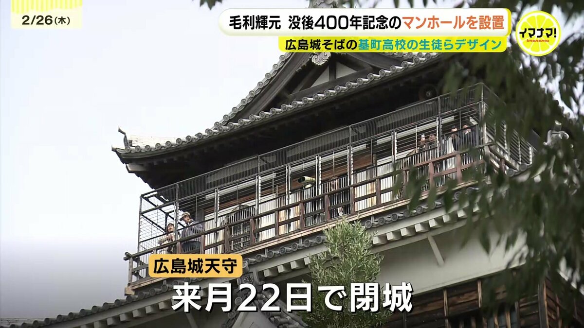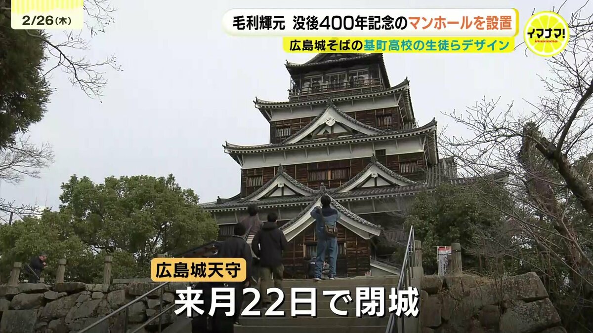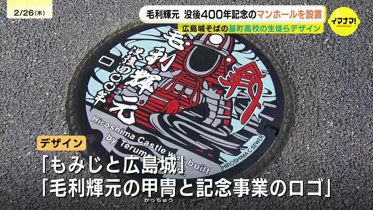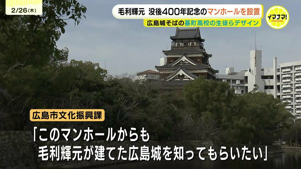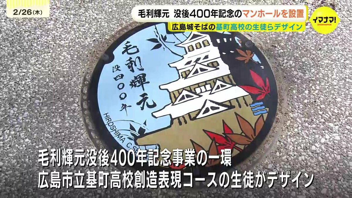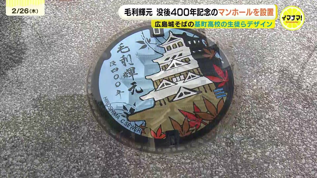 広島城を築城した毛利輝元没後400年を記念して、高校生がデザインしたマンホールが設置されました。