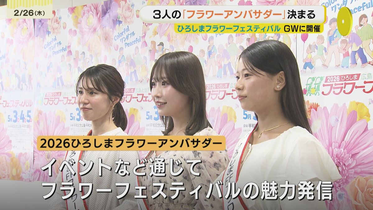 「ひろしまフラワーフェスティバル」の顔となる、3人のアンバサダーが決まりました。