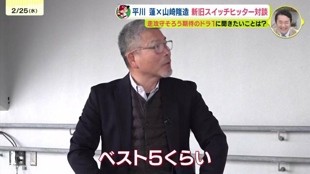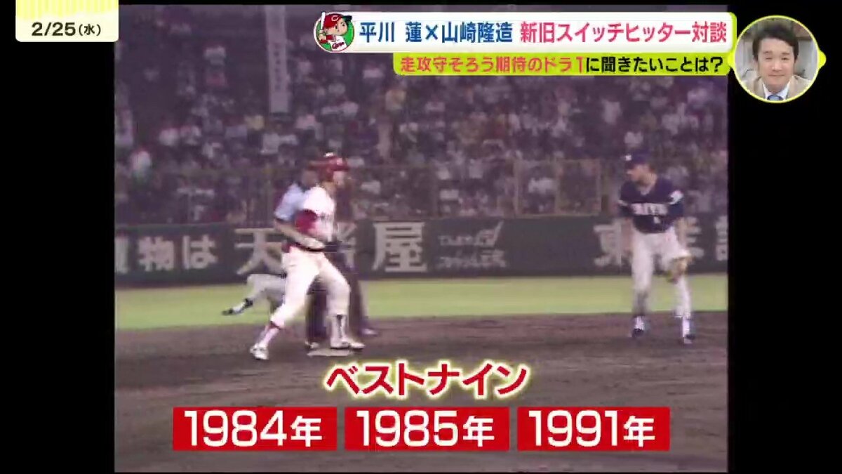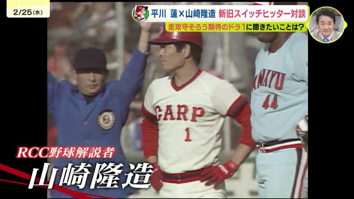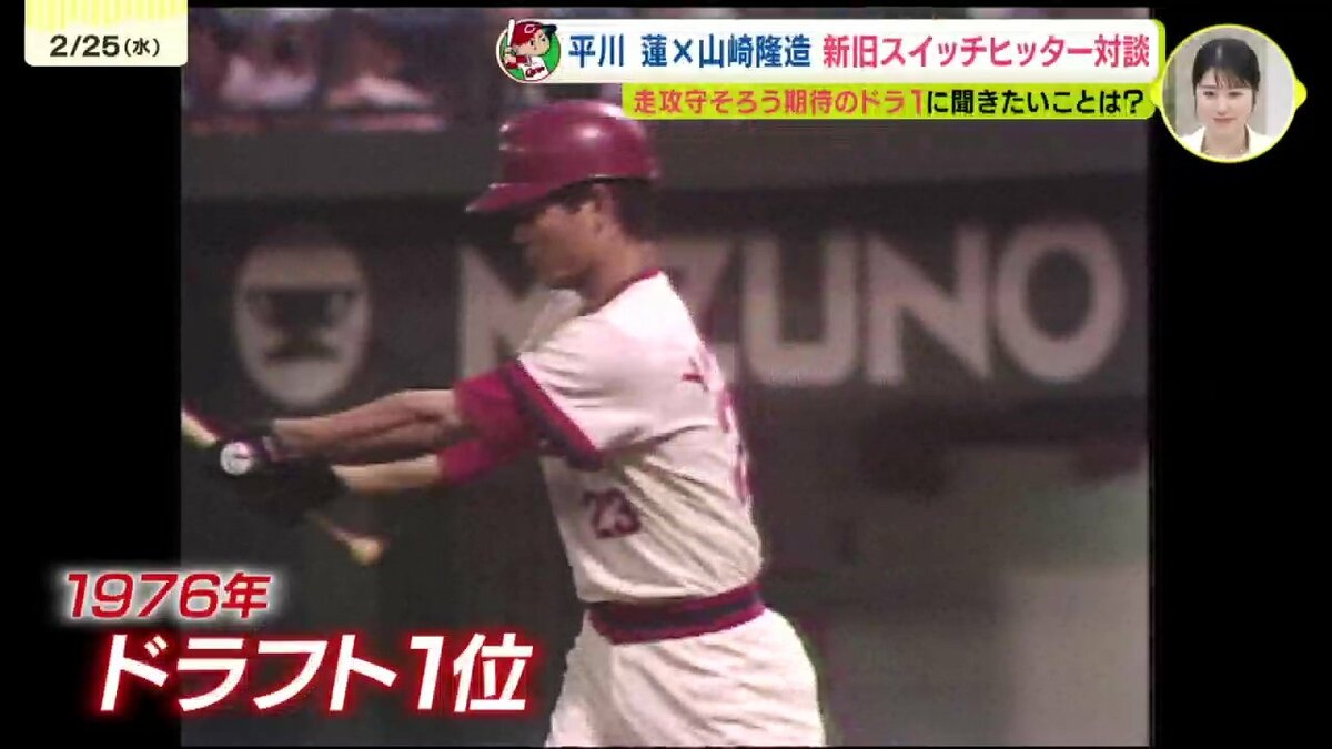 大型ルーキー・ドラフト1位の平川蓮選手とRCC野球解説者・山崎隆造さんの夢の対談が実現しました。この2人の共通点は、左右両打ちのスイッチヒッターということ。ことしのドラ1ルーキー・3割30本30盗塁のトリプルスリーを狙うスイッチヒッター平川蓮選手と1976年のドラフト1位、俊足を生かすためにプロ入り後に両打ちに転向し3度のベストナインという山崎隆造さん。ドラフト1位でカープに入り、ともにスイッチヒッターという2人の対談のゆくえは…!?(全3回の1回目です)