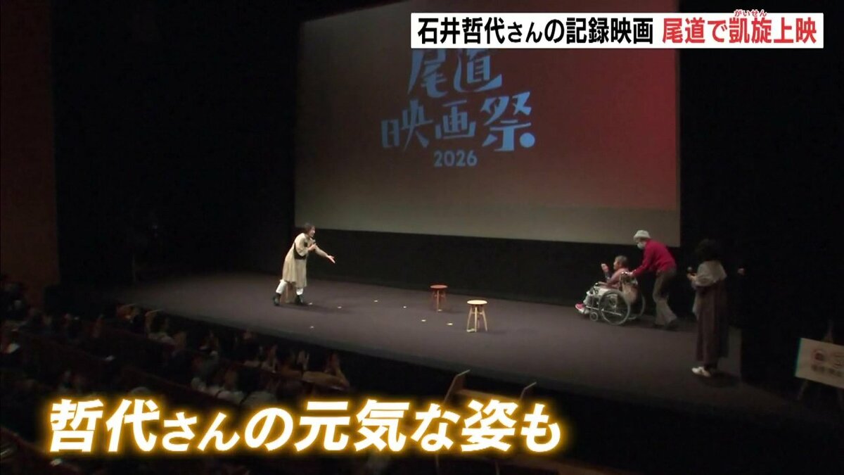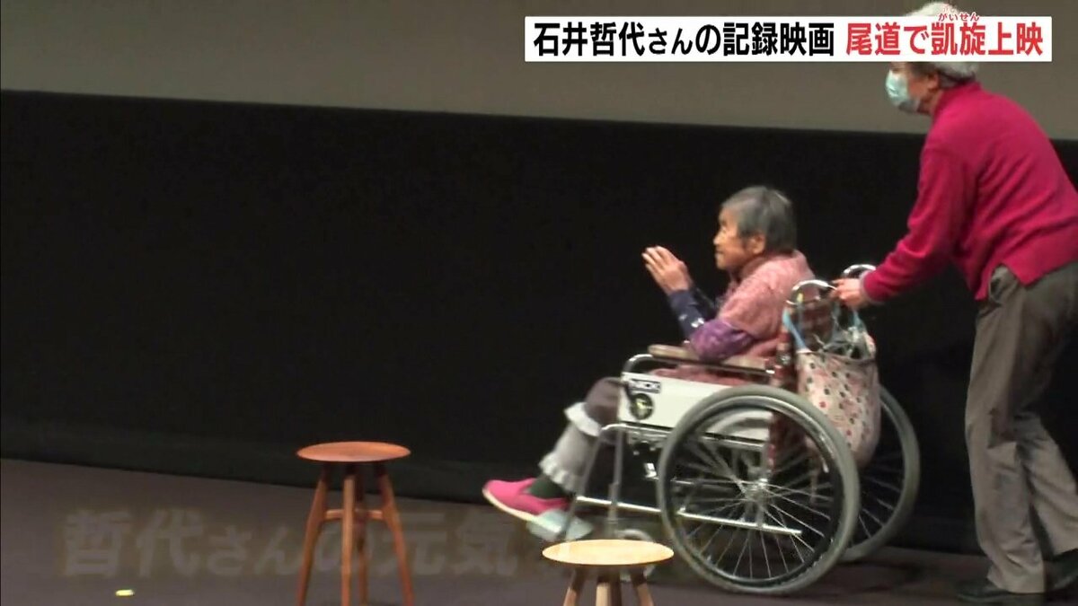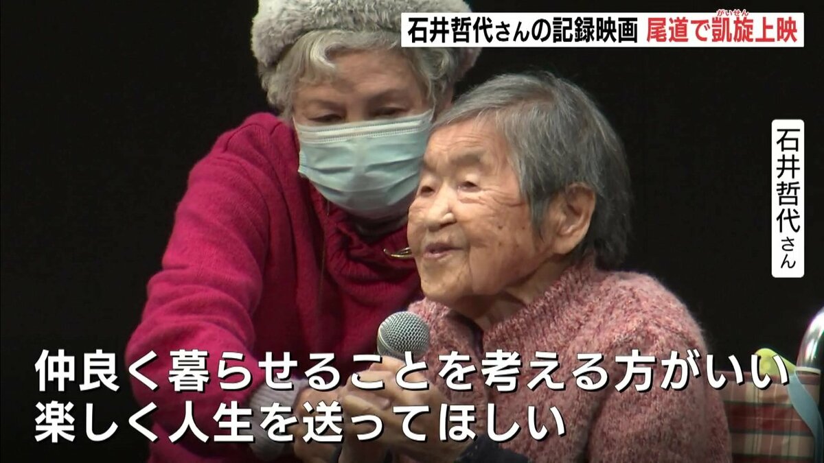 100歳を超えても一人暮らしを続ける女性の記録映画が1日、広島県尾道市で上映され、主人公の石井哲代さん(105)が、舞台上で挨拶しました。