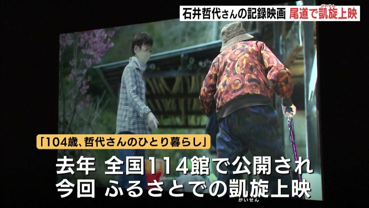 映画「104歳、哲代さんのひとり暮らし」は、尾道市の石井哲代さんの暮らしぶりを記録したドキュメンタリー作品です。去年、全国114館で公開され、今回、ふるさとの映画祭での凱旋上映となりました。