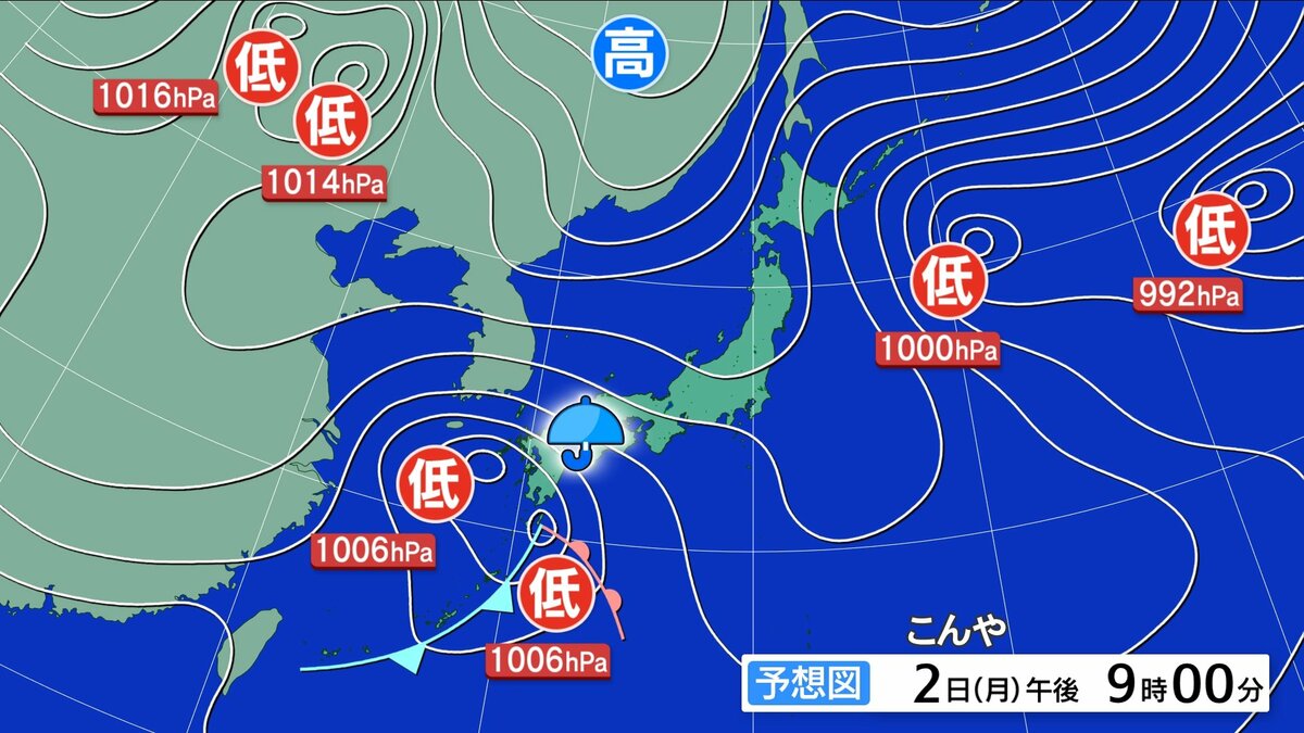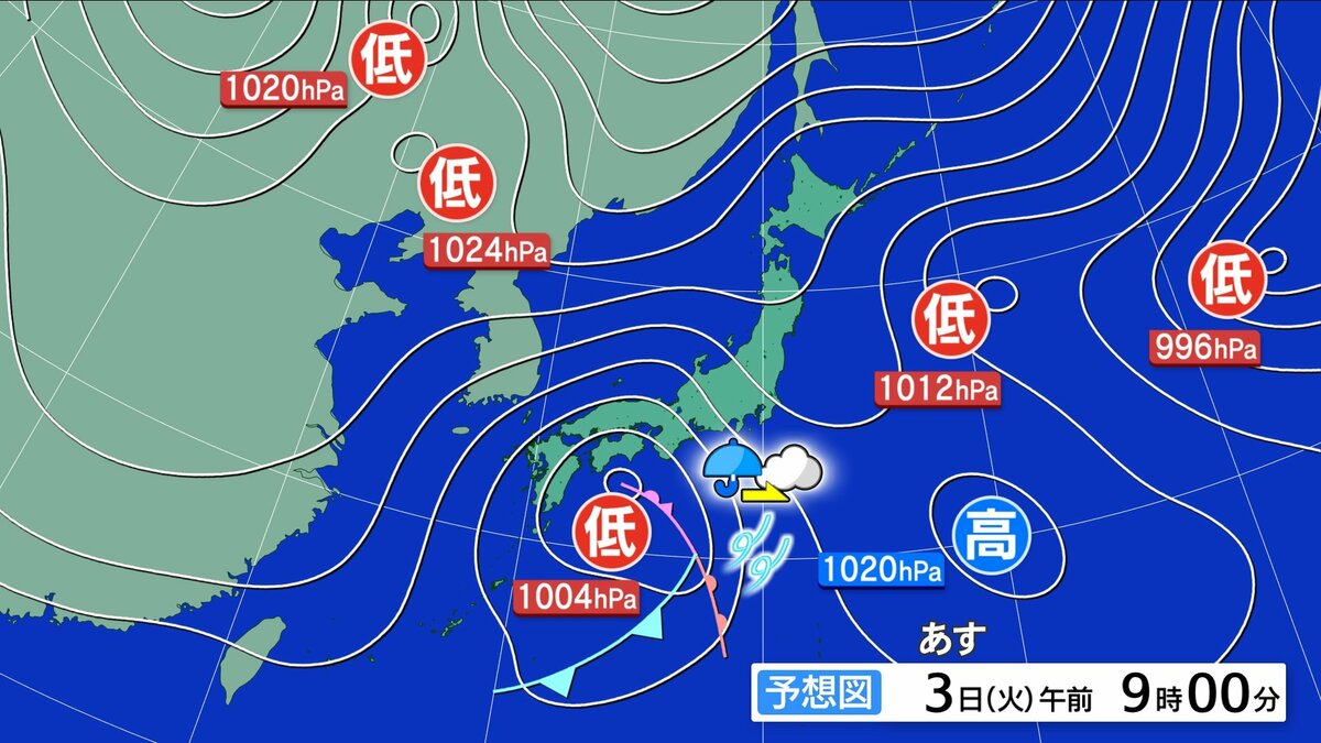 あすにかけて南岸低気圧が本州の南を東進し、本降りの雨が続き、まとまった雨になる見込みです。雨脚が強まる時間帯があるでしょう。あす朝の通勤通学時間帯も傘の出番となりそうです。午後は次第に回復しますが、北部では午後も一部にわか雨の地点があり、みぞれに変わる時間があるかもしれません。