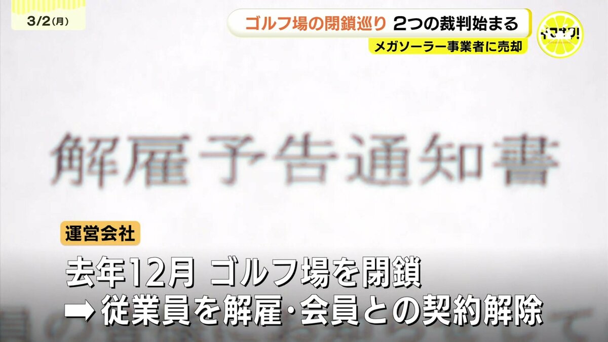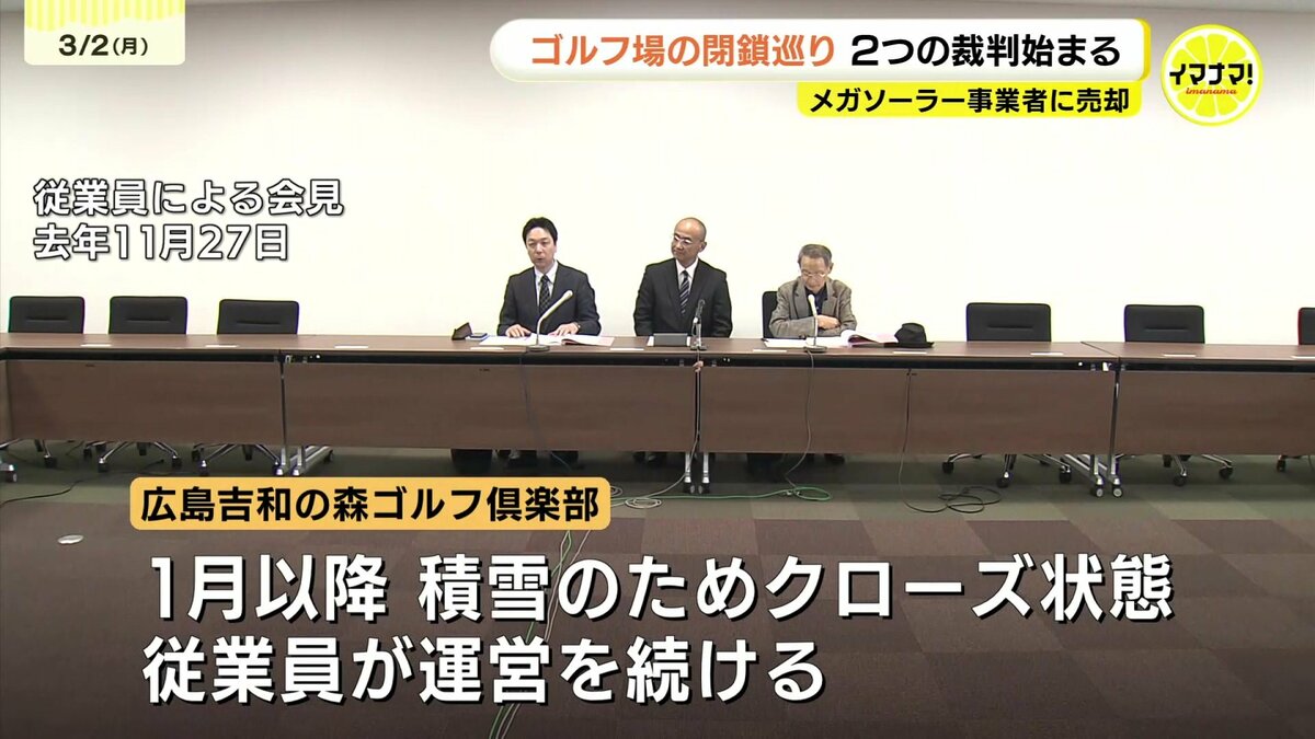 広島県廿日市市にあるゴルフ場の閉鎖をめぐって、2つの裁判が始まりました。ゴルフ場の会員が運営会社を、一方、会社は従業員を訴えています。