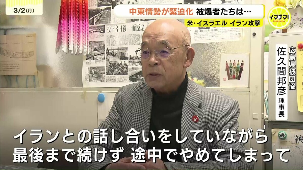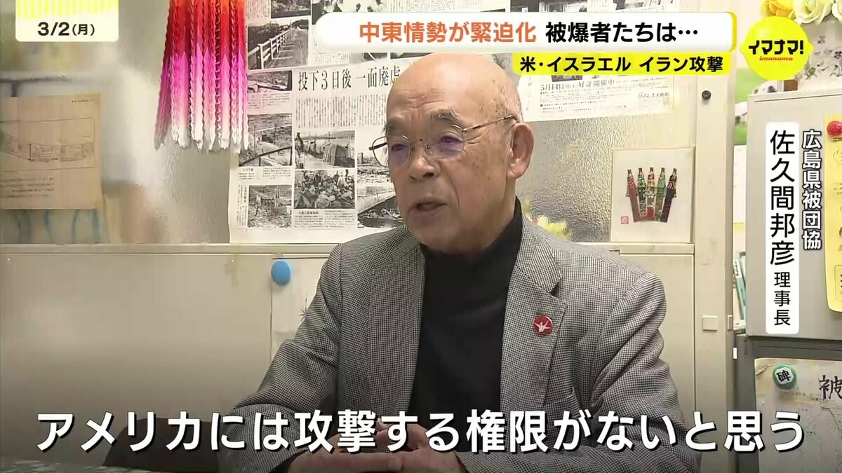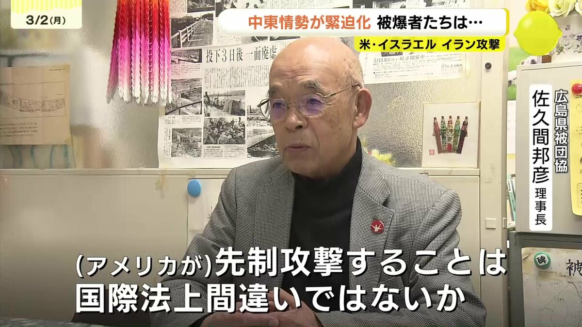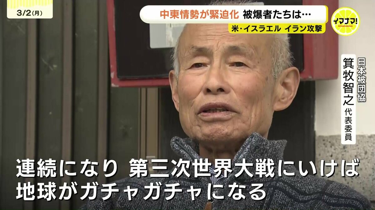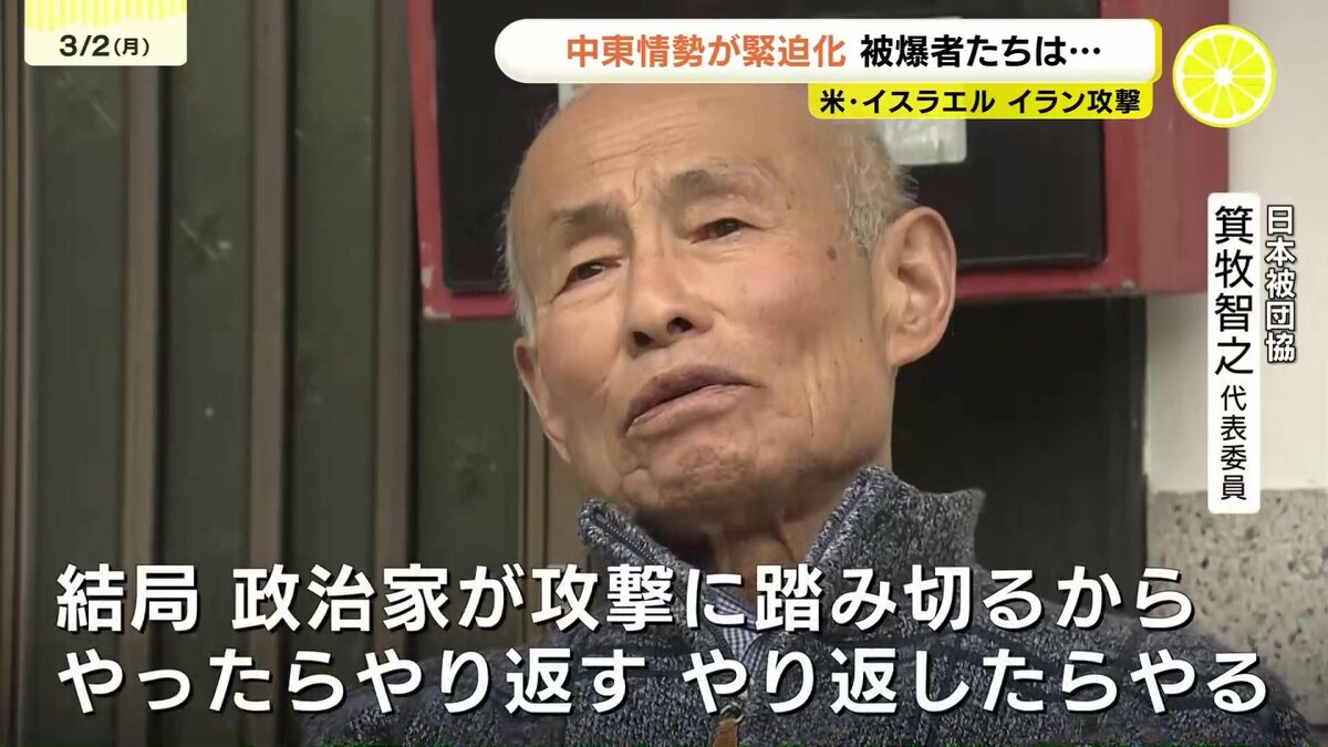アメリカとイスラエルによるイランへの軍事攻撃で、中東情勢が緊迫化しています。広島県内の被爆者に受け止めを聞きました。