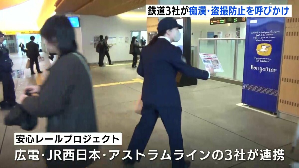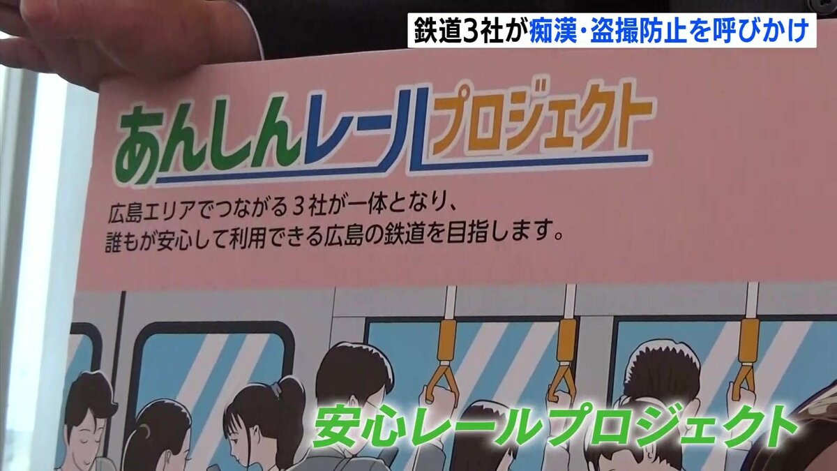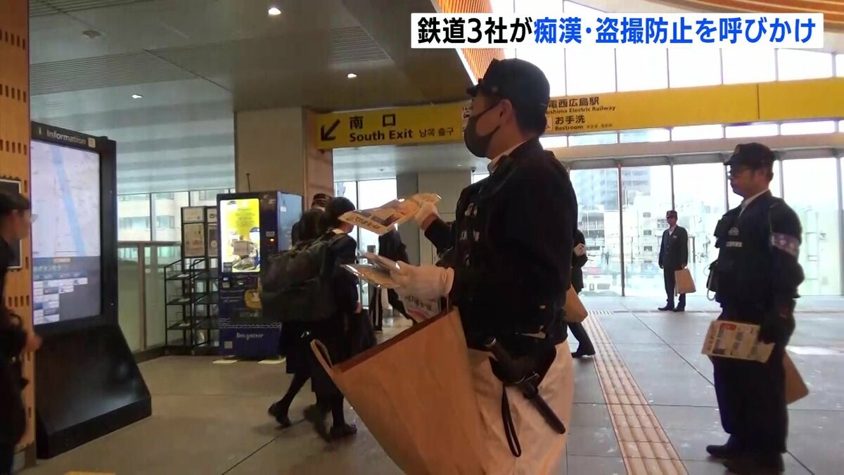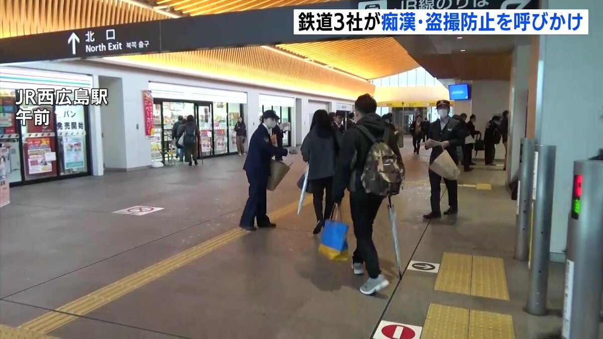 安心して駅や列車を利用してもらえる環境を作ろうと、広島エリアの鉄道3社が痴漢や盗撮防止を掲げた啓発活動を行いました。