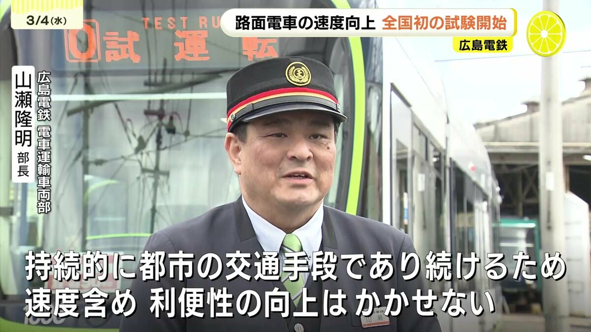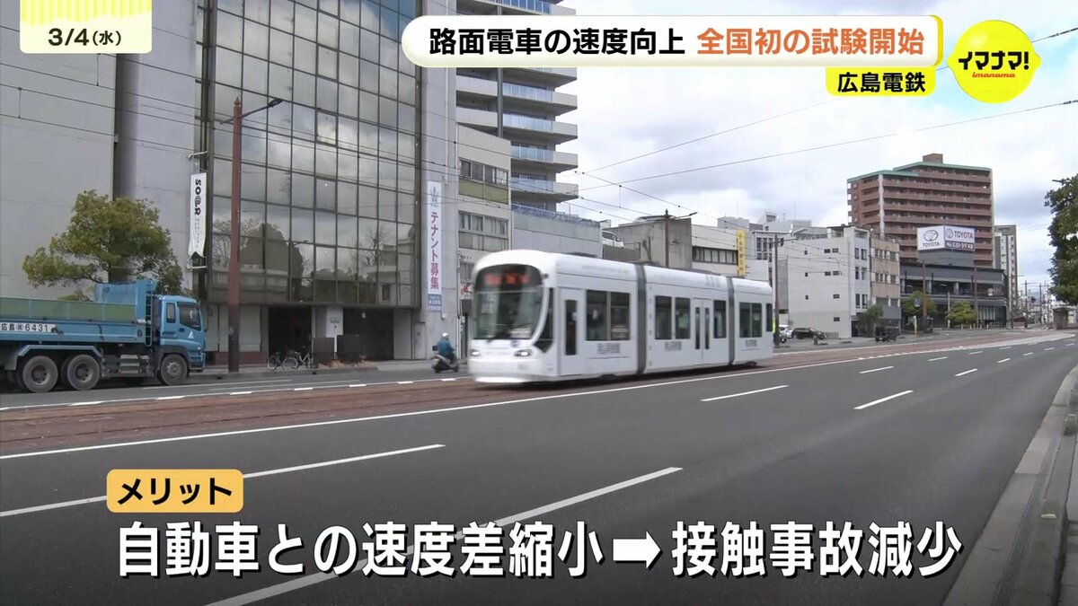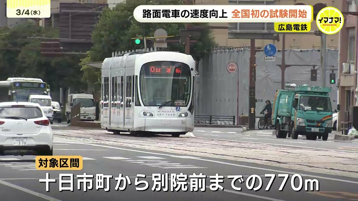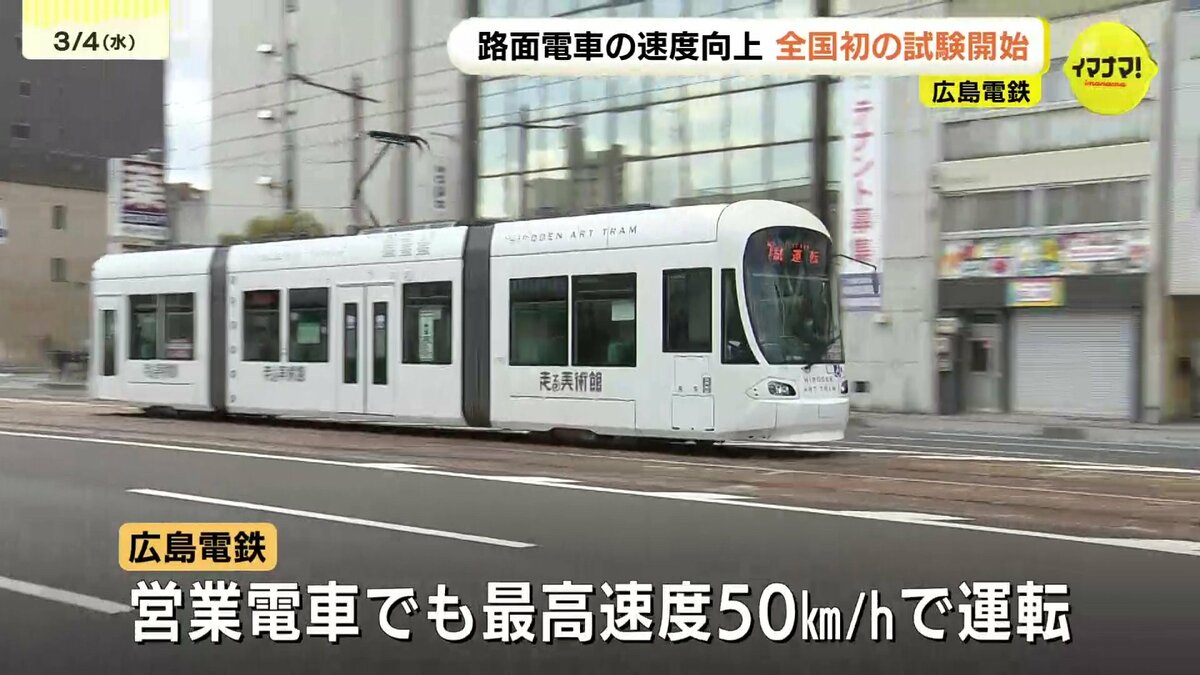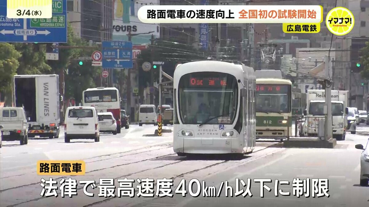 路面電車の速度をこれまでより上げる試験が、4日から、全国で初めて広島市でスタートしました。