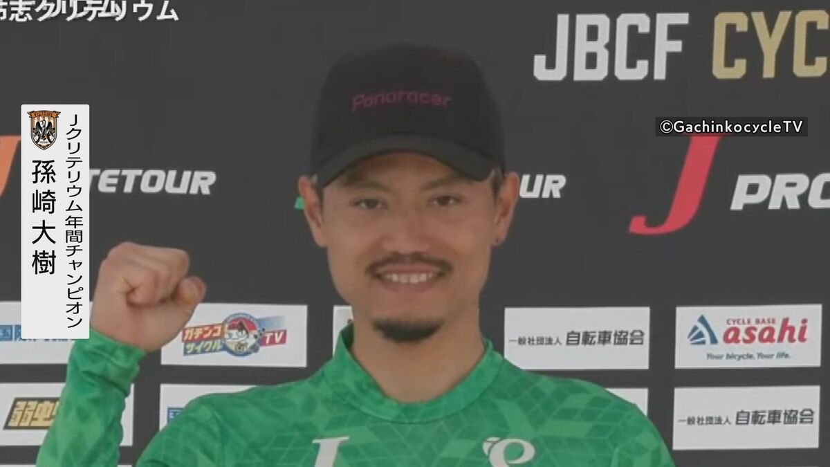 孫崎は、今年の開幕戦・志布志クリテリウムで優勝しリーダーの証、チャンピオンジャージを着て連勝を狙う