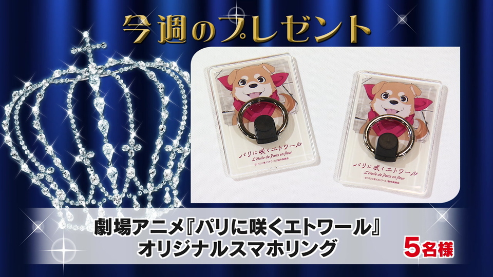 3月6日(金)放送の「ランキンLand!」から視聴者プレゼントのお知らせです。今週のプレゼントは、3月13日(金)に公開される劇場アニメ『パリに咲くエトワール』のオリジナルグッズ!『パリに咲くエトワール』は『ONE PIECE FILM RED』の谷口悟朗監督と、ジブリ作品のキャラクターデザインで知られる近藤勝也さんが贈る、ふたりの少女の物語です。ぜひ、映画もご覧ください。