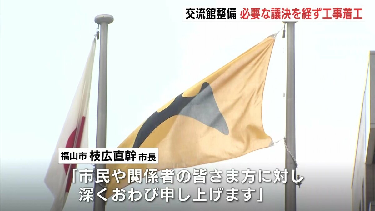 広島県福山市は5日、新築する交流館の整備を巡り議会の議決が必要な議案を提出せずに工事を着工していたと明らかにしました。