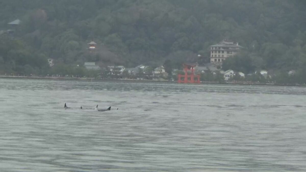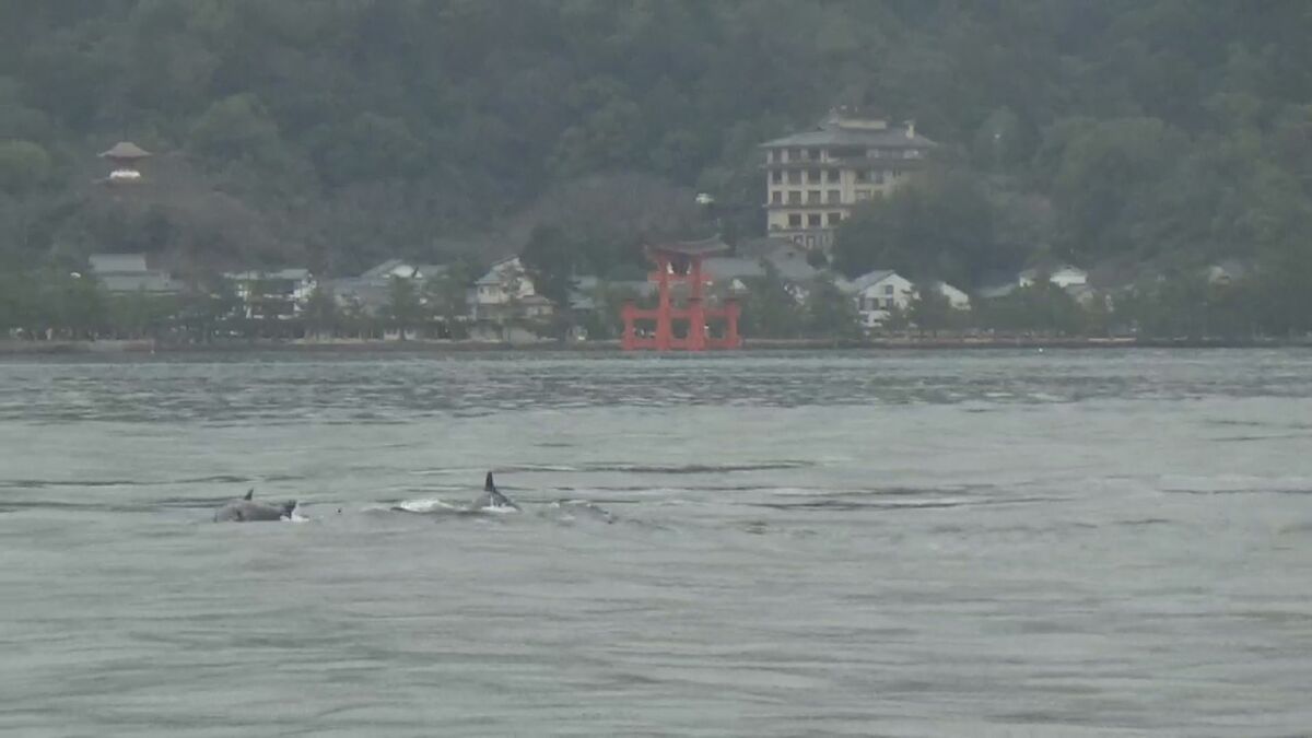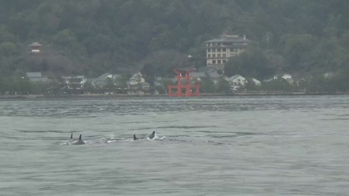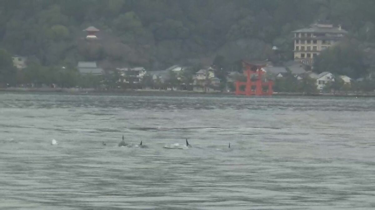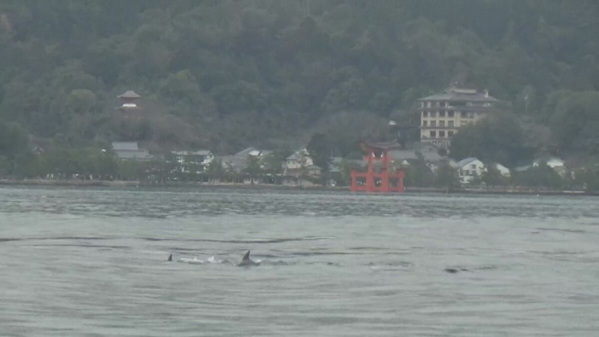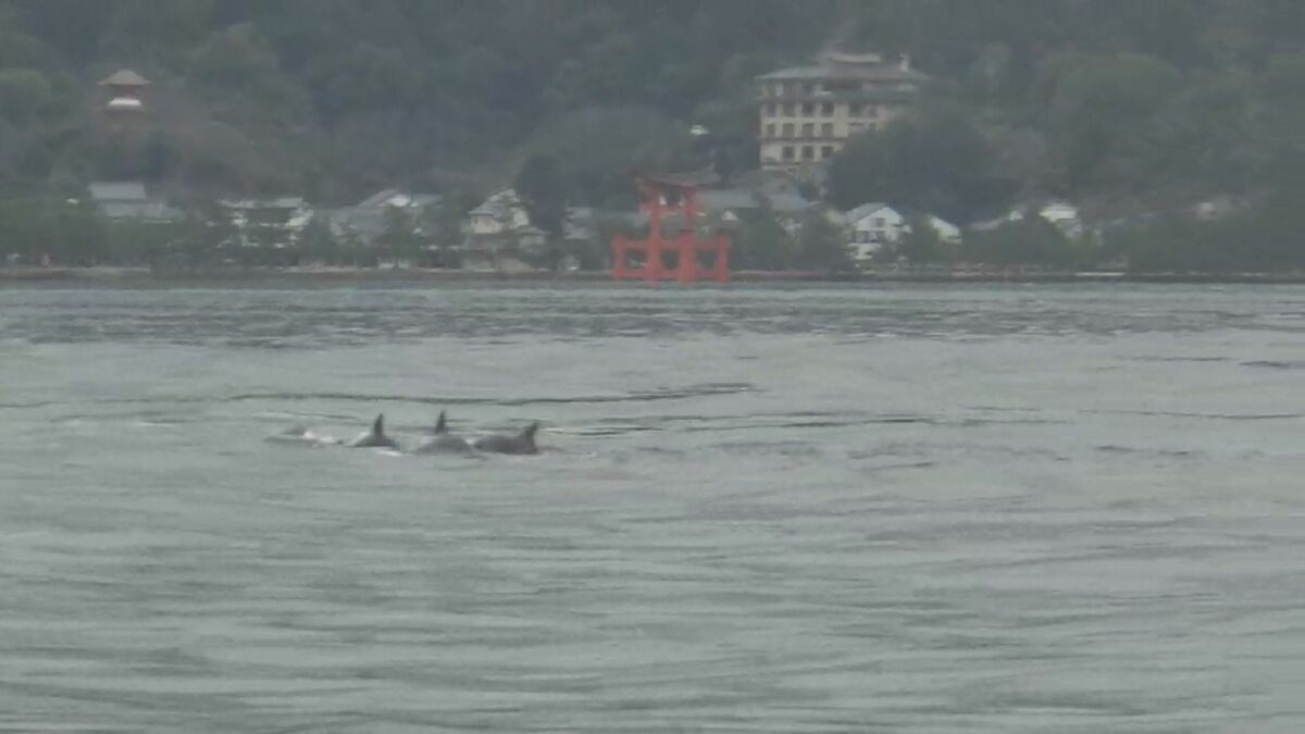 広島海上保安部によりますと、5日午前11時ごろ、業務で廿日市市宮島沖にいた船が偶然、イルカの群れを発見し撮影しました。イルカの群れはおよそ10頭いたということです。