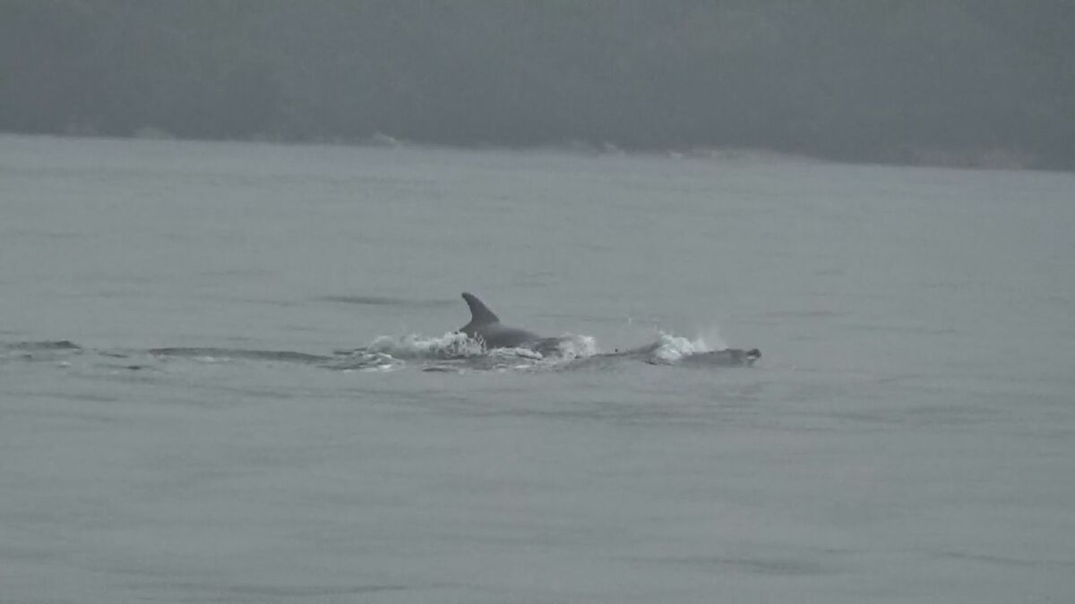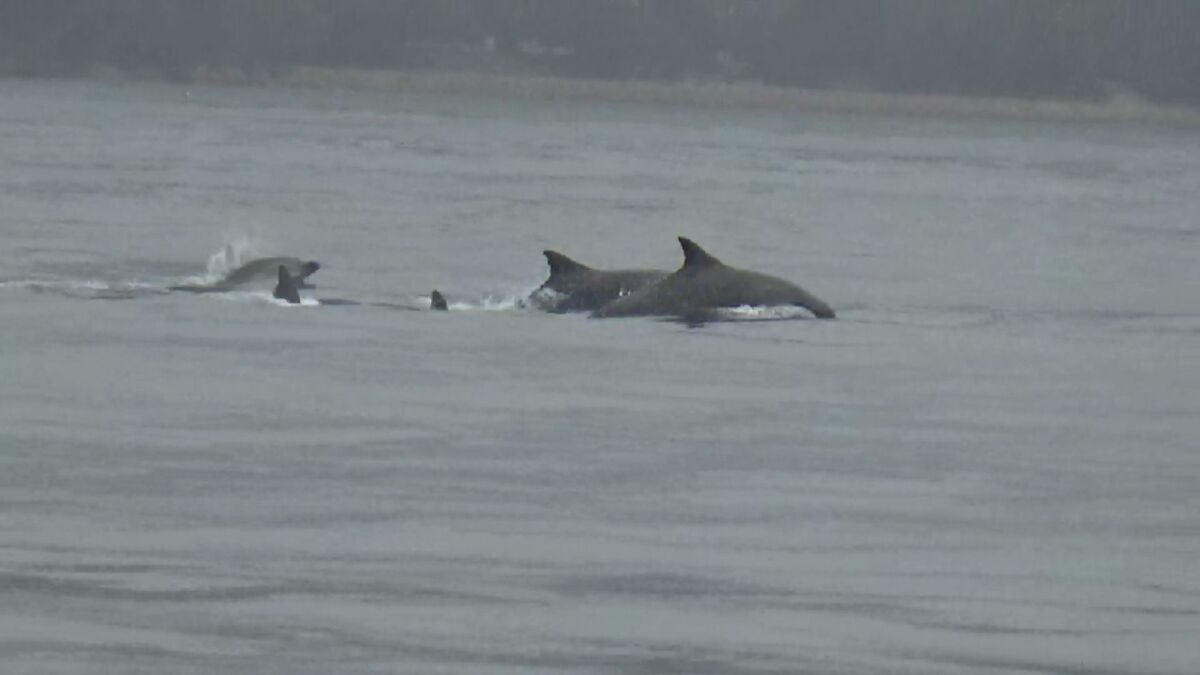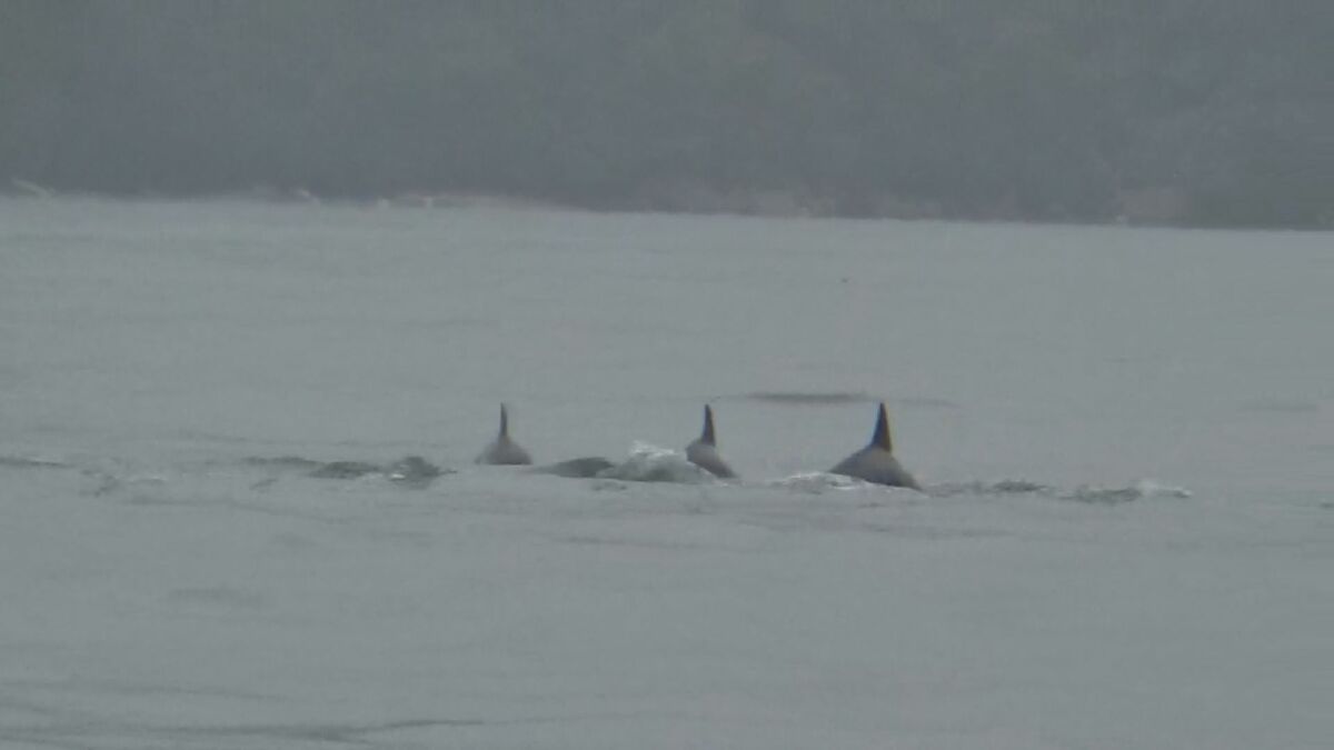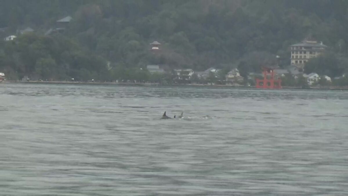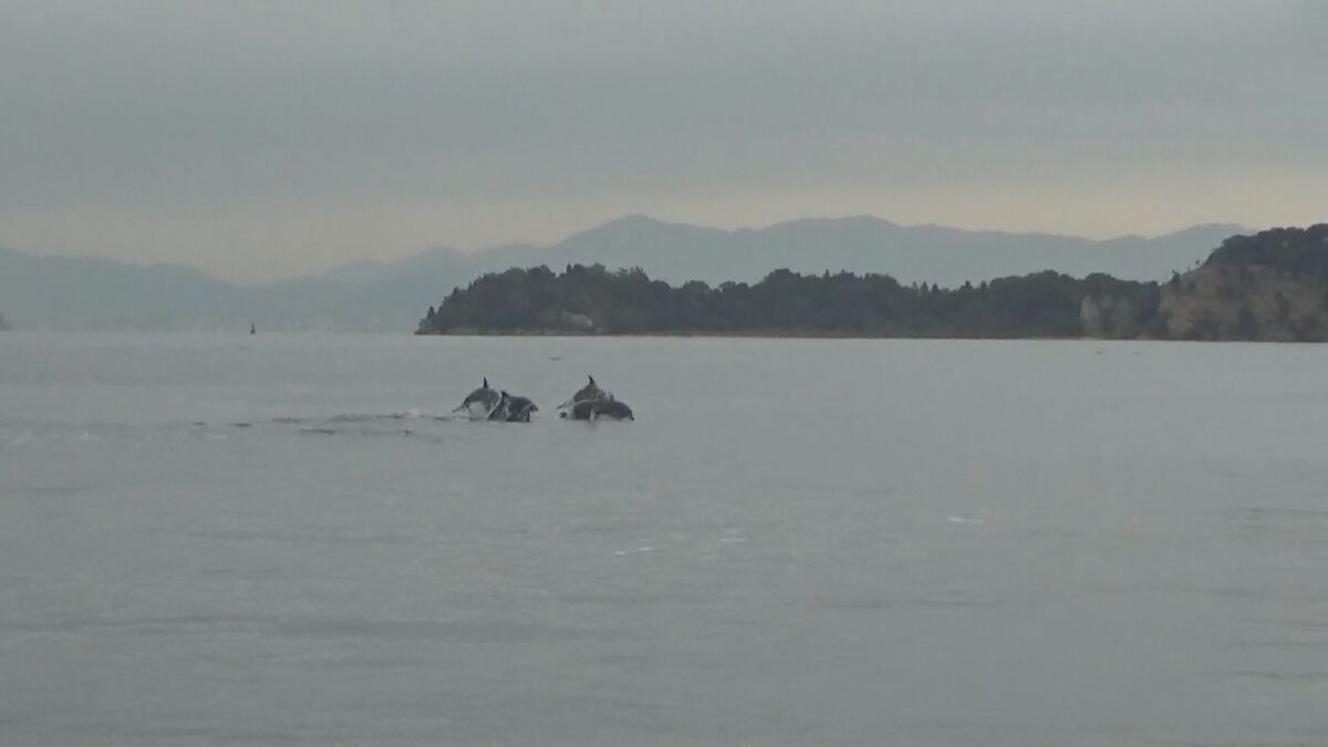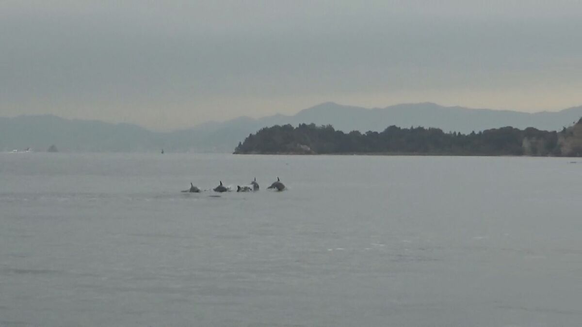 広島県廿日市市でイルカの群れが泳いでいるのが発見されました。