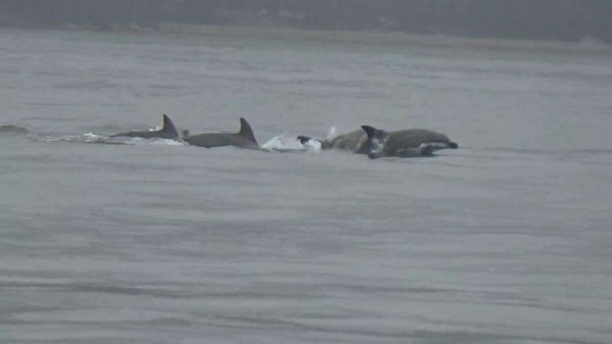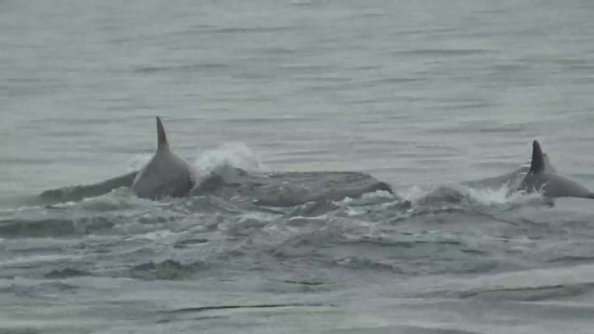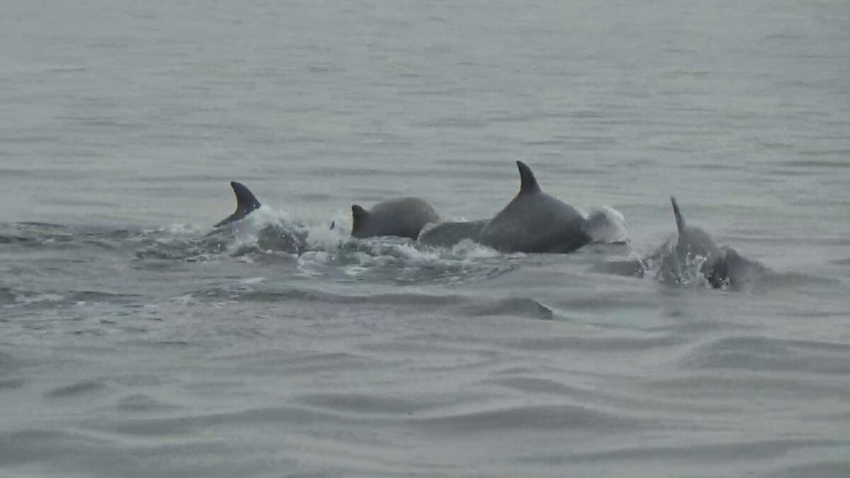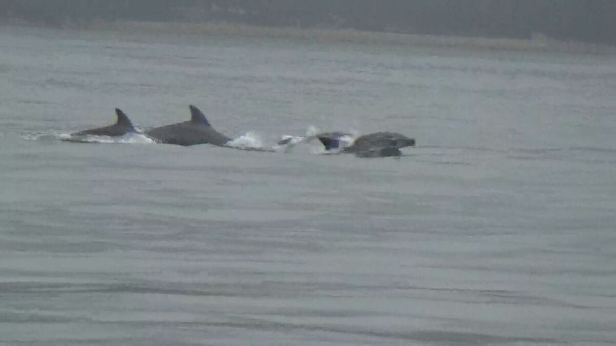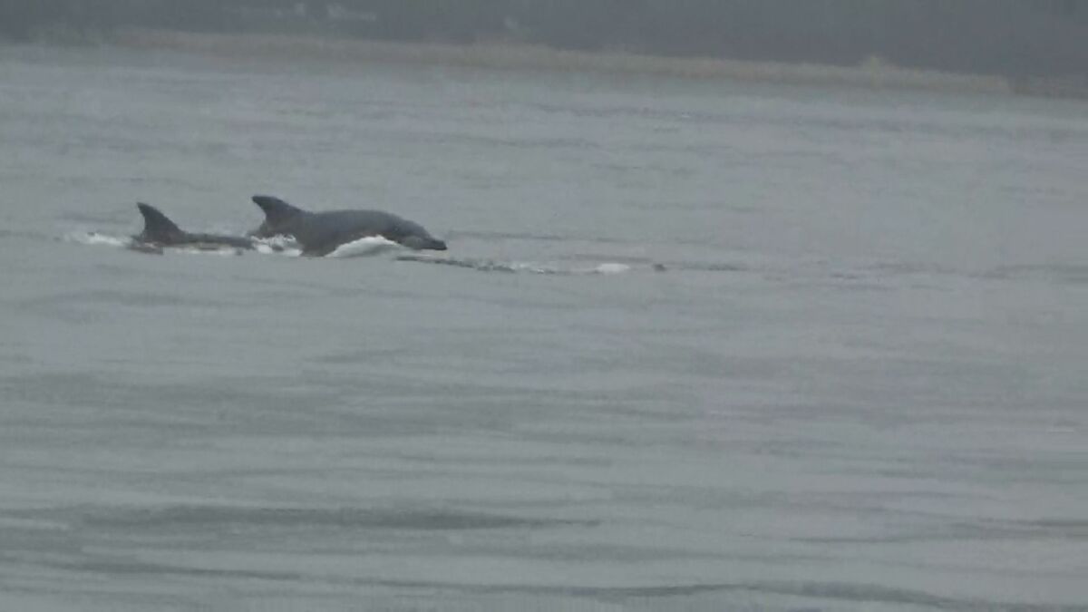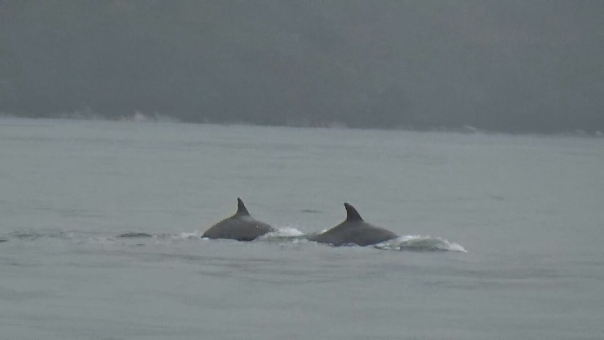 広島県廿日市市でイルカの群れが泳いでいるのが発見されました。