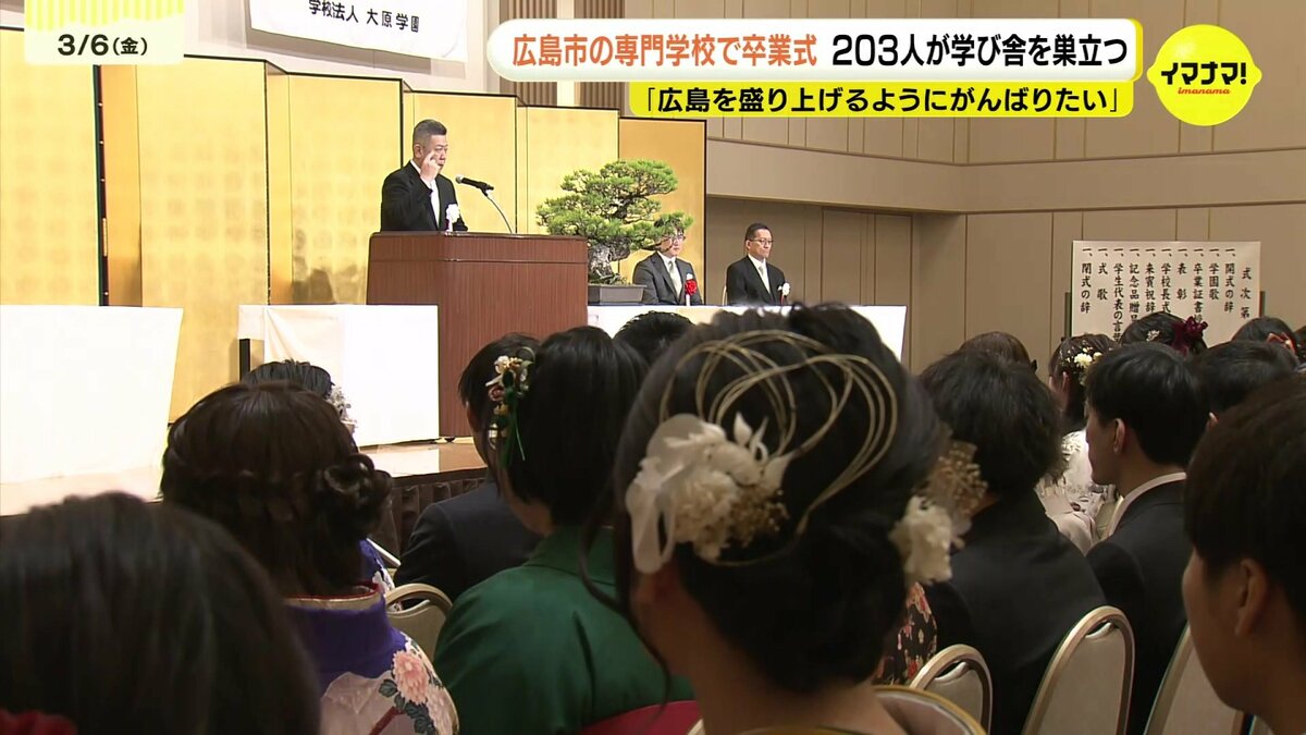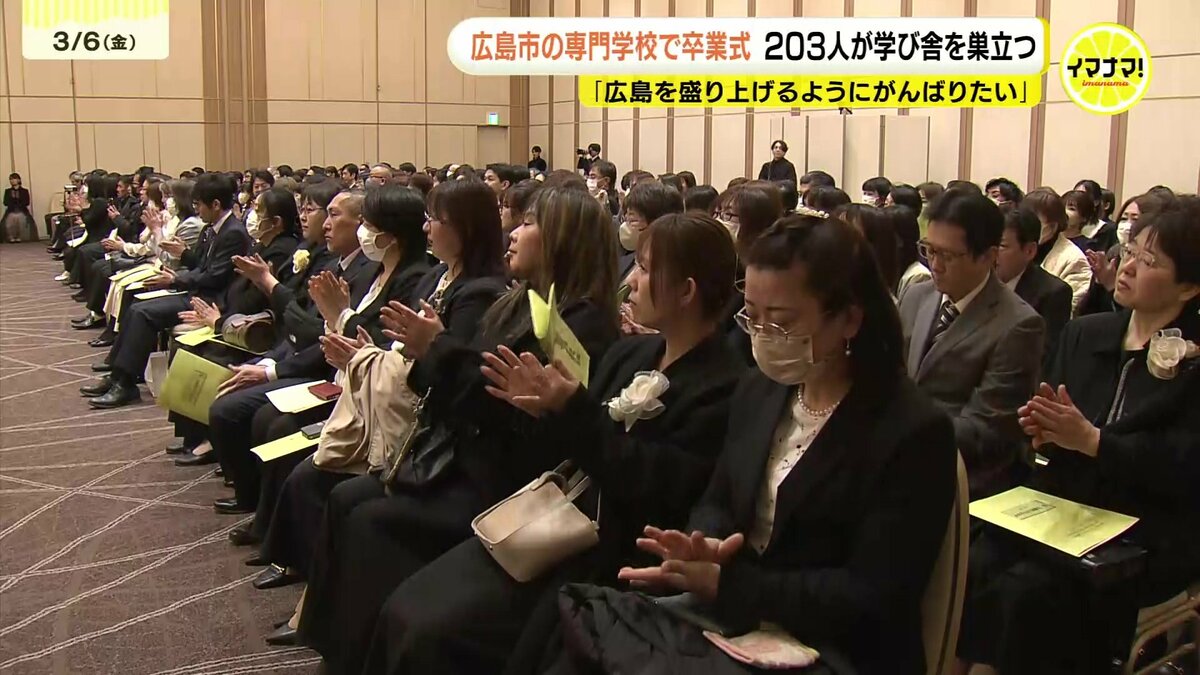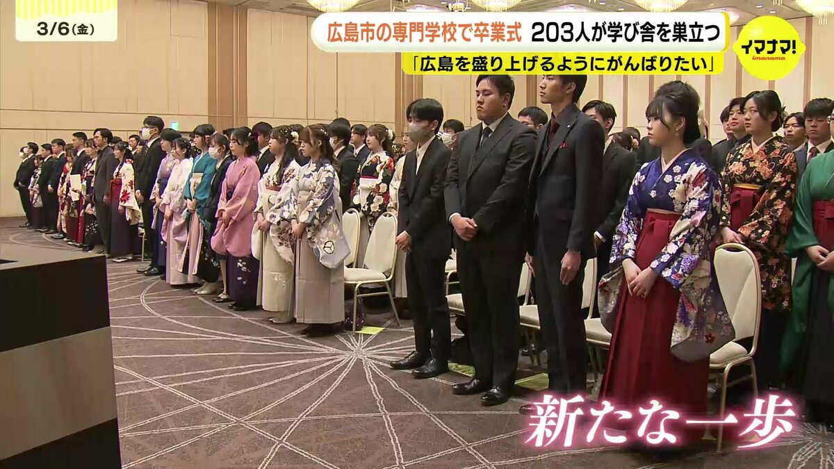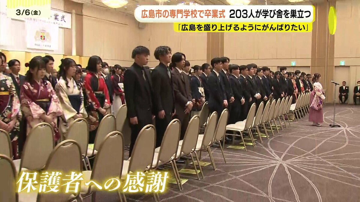 広島市にある専門学校の卒業式があり、203人が学び舎を巣立ちました。