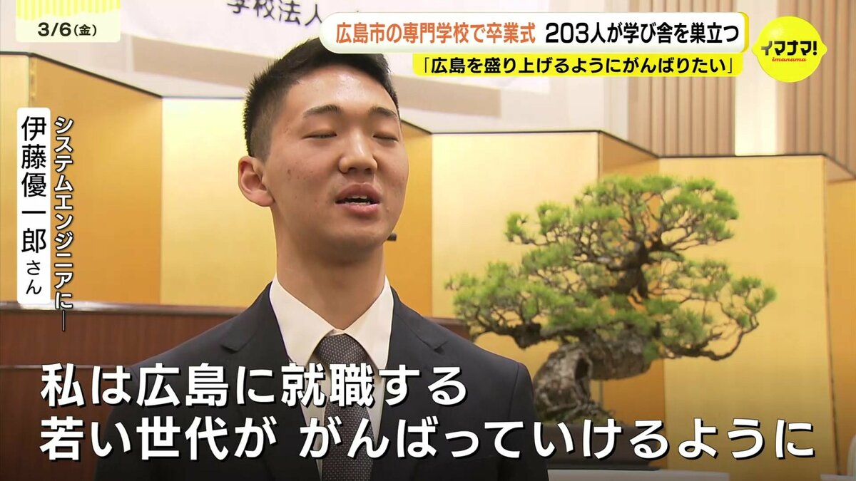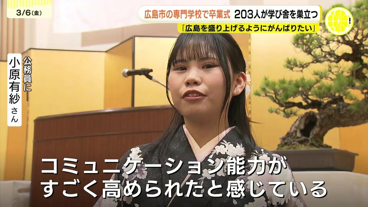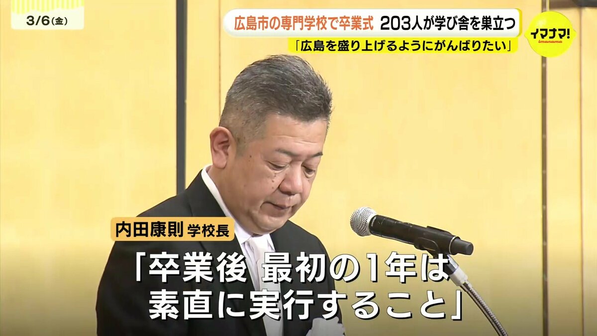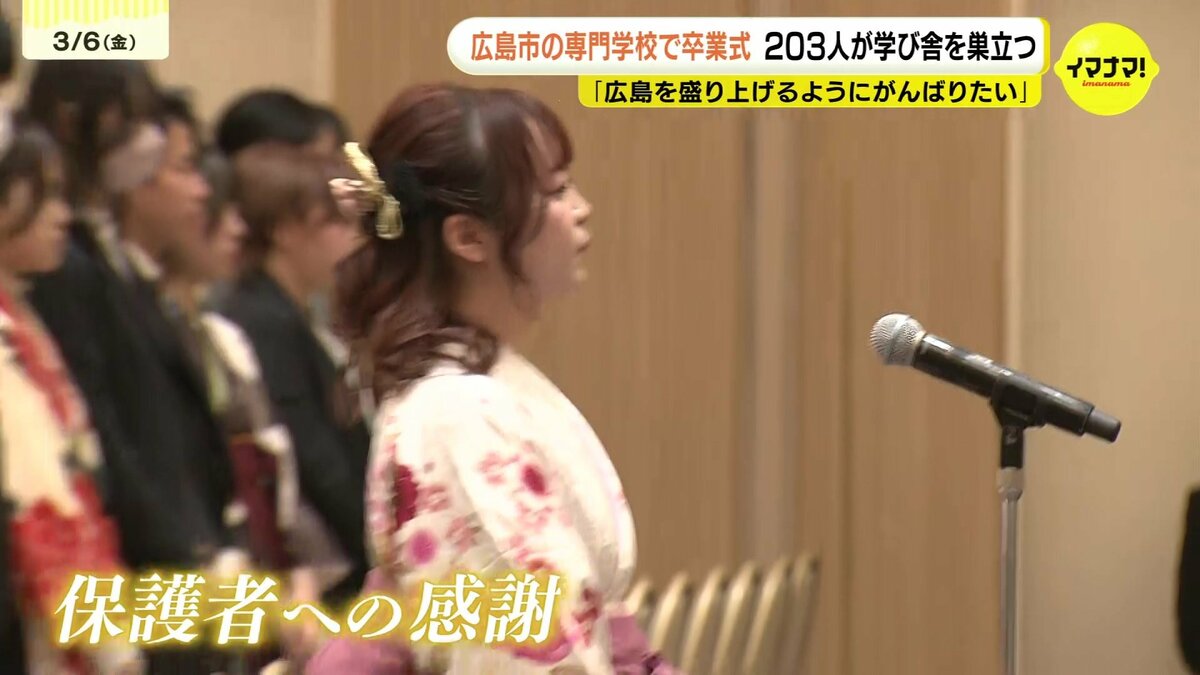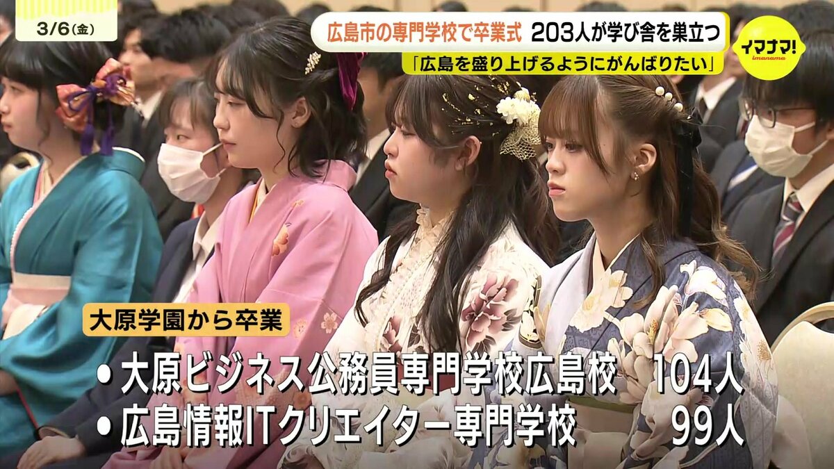 広島市にある専門学校の卒業式があり、203人が学び舎を巣立ちました。
