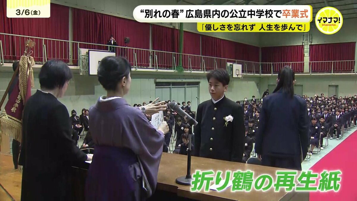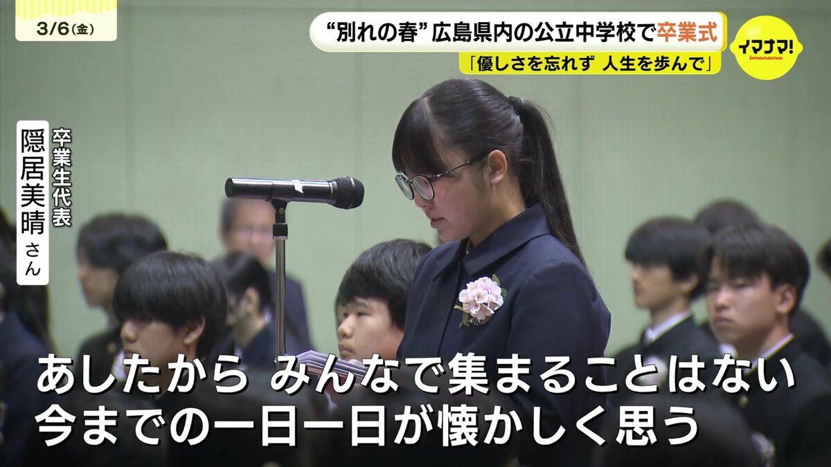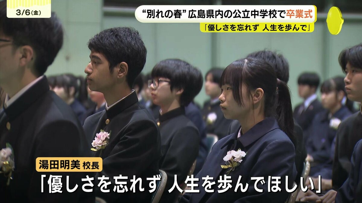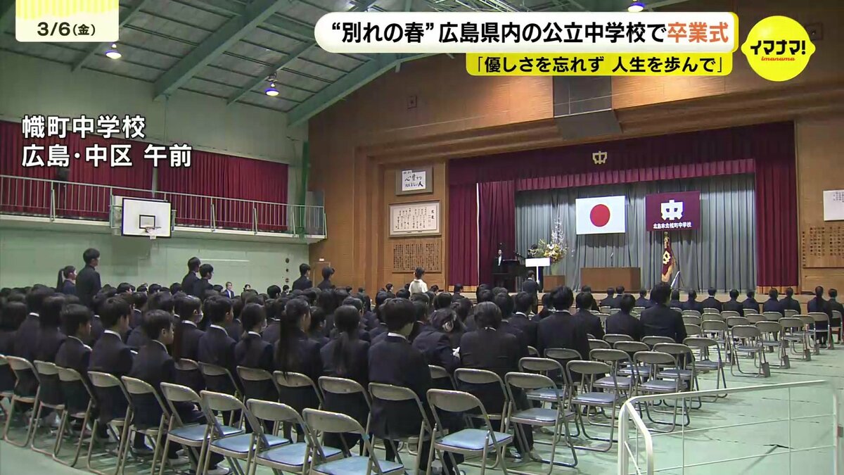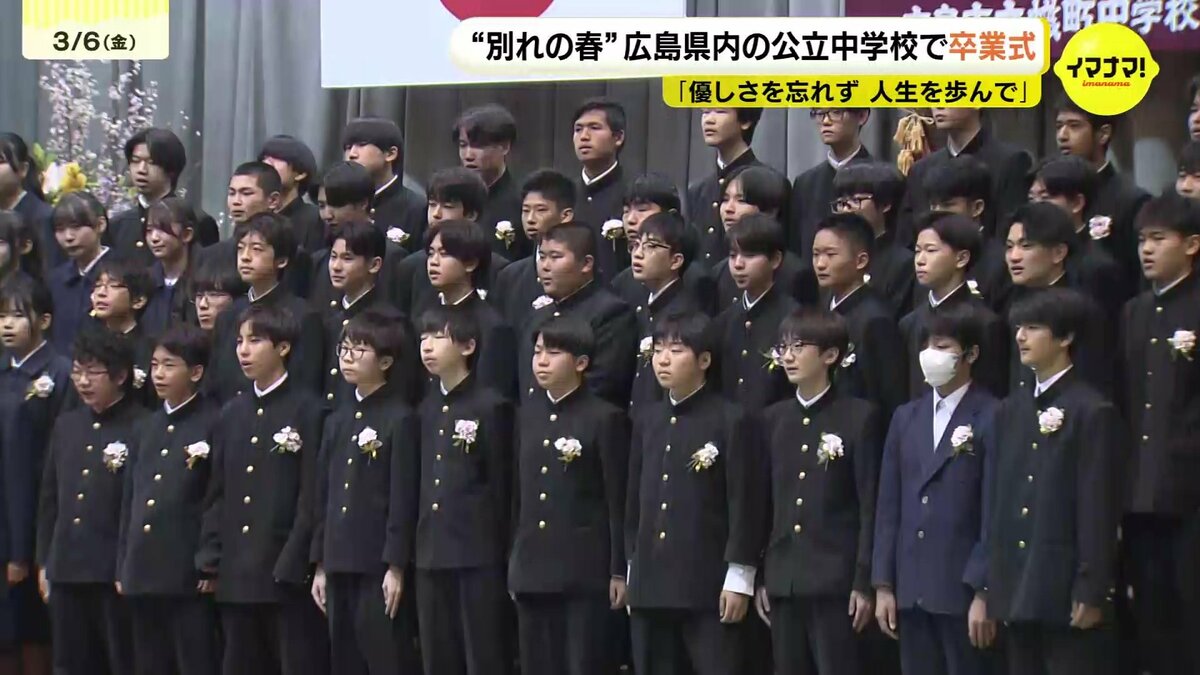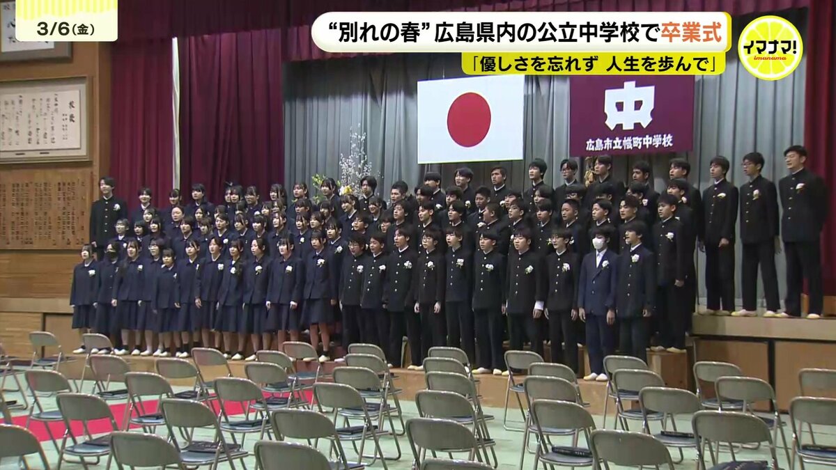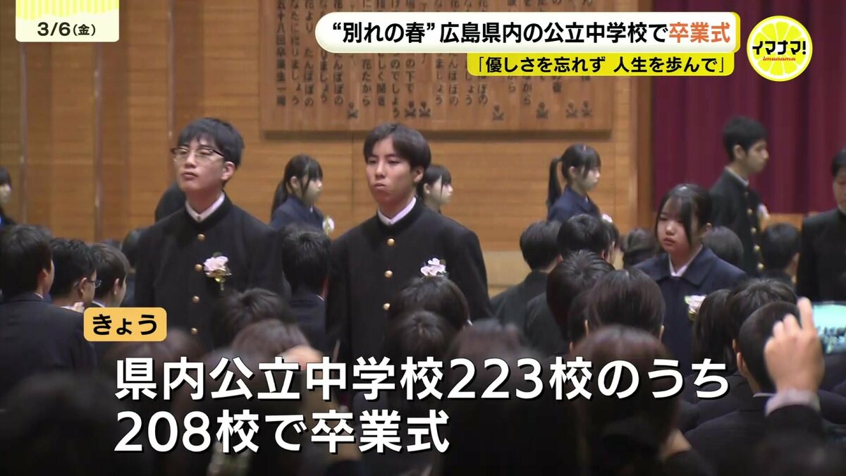 6日は広島県内の公立中学校223校のうち208校で卒業式が行われ、生徒たちが学び舎を後にしました。