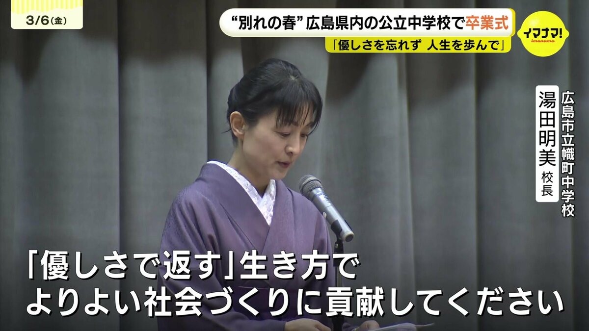 別れの春がやってきました。6日、広島県内では多くの公立中学校で卒業式が行われました。