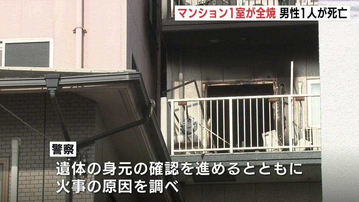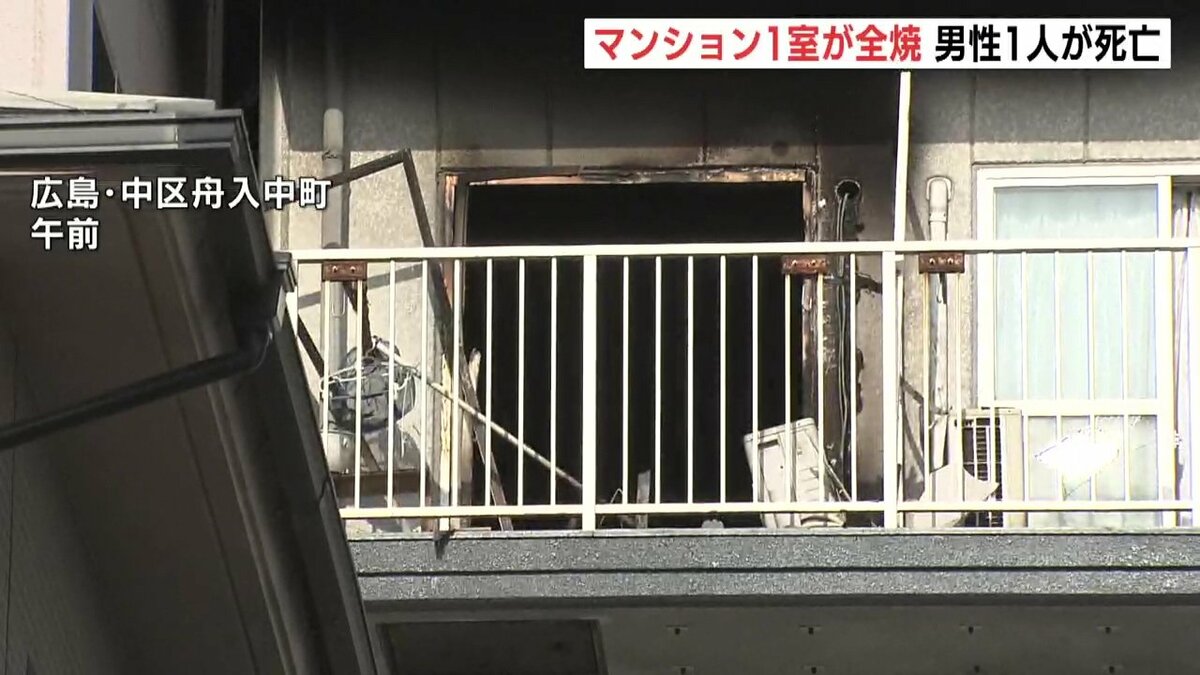 広島市で、マンションの一室が全焼する火事があり、焼け跡から男性1人の遺体が見つかりました。