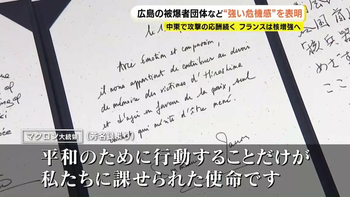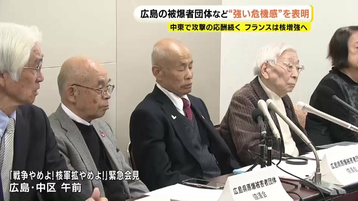 イランの核開発問題をめぐって中東で攻撃の応酬が続いています。一方でフランスは核弾頭を増やす方針を示しました。こうした国際情勢を受け、広島の被爆者団体などが6日、広島市で緊急の会見を開き、強い危機感を表明しました。