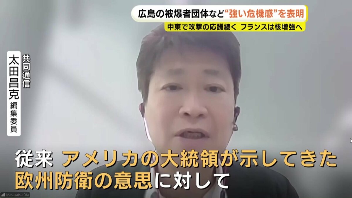 核問題に詳しい共同通信編集委員の太田昌克さんは、マクロン大統領の発言の背景には、ヨーロッパのアメリカに対する疑念があると指摘します。
