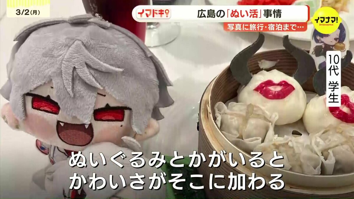 2025年の流行語大賞にノミネートされ、市場を拡大しつつある「ぬい活」。お気に入りのぬいぐるみを「推し」に見立て、着せ替えたり一緒に出かけたりするこの活動が、広島の街でも広がりを見せています。