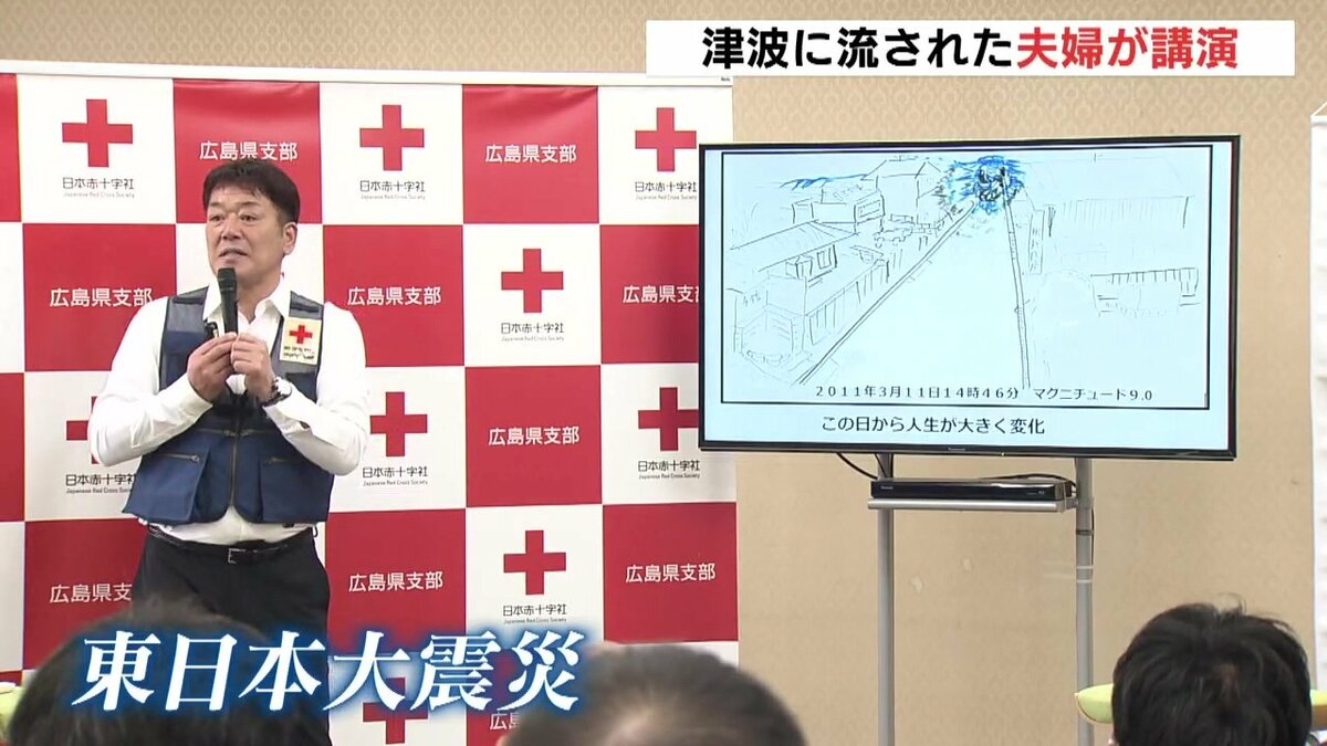 東日本大震災で津波に流され被災した夫婦が8日、講演会で当時の経験を語りました。