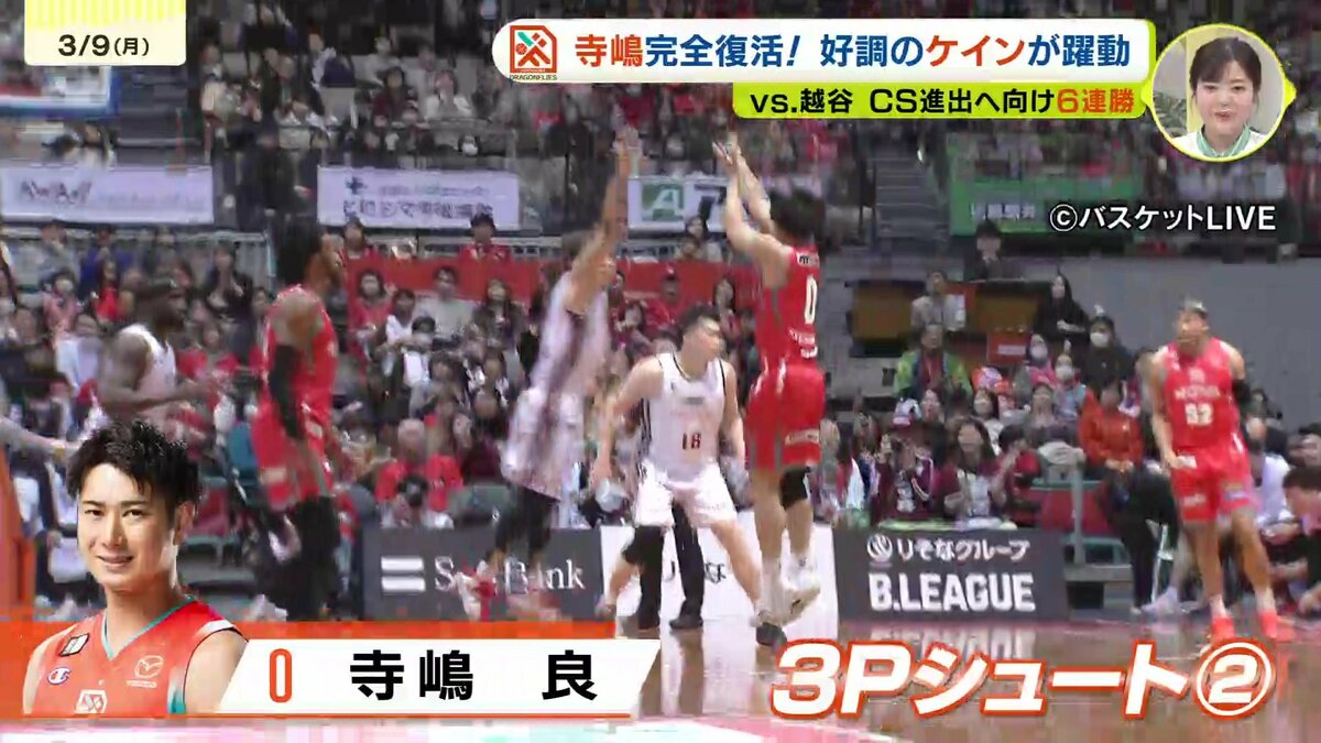 前日まで「3ポイントが入らない」と吐露していた寺嶋だったが、この日は見事に3ポイントを連続で沈め、今季最多の18得点を記録した。