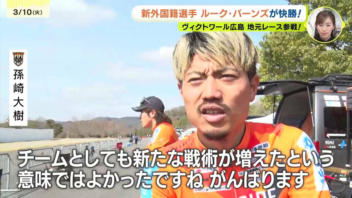 自転車ロードレースのヴィクトワール広島は今月末のホームレースの前哨戦となる西日本チャレンジサイクルロードレースで新外国籍選手のルーク・バーンズが優勝しました。