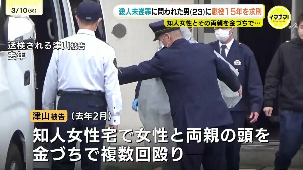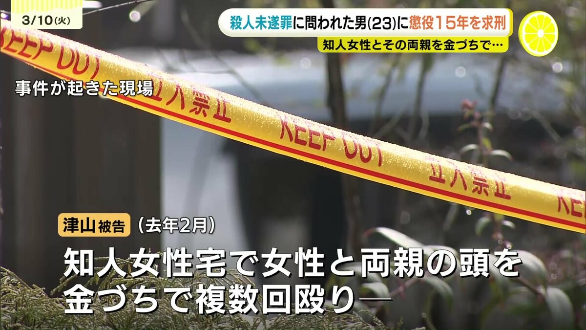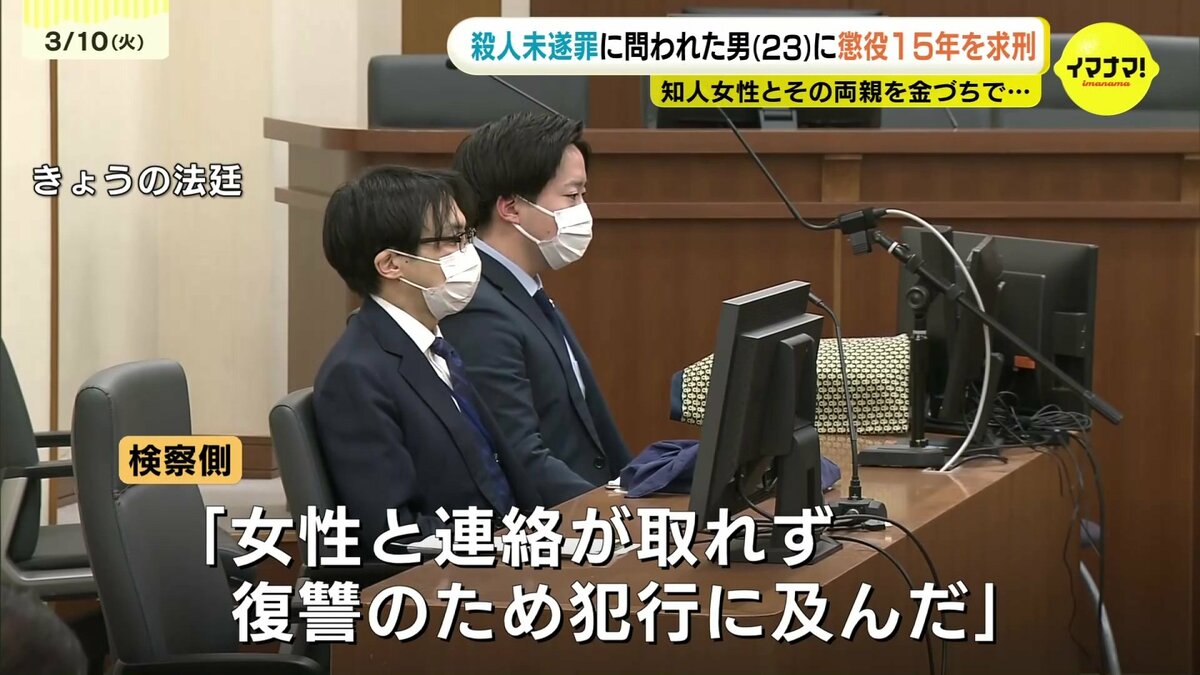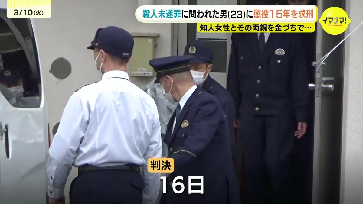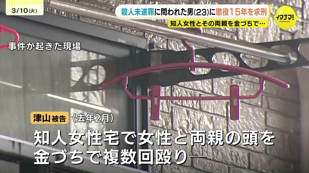 知人の女性とその両親を殺害しようとした罪に問われている男の裁判員裁判で、10日、検察側は懲役15年を求刑しました。