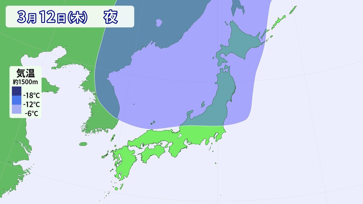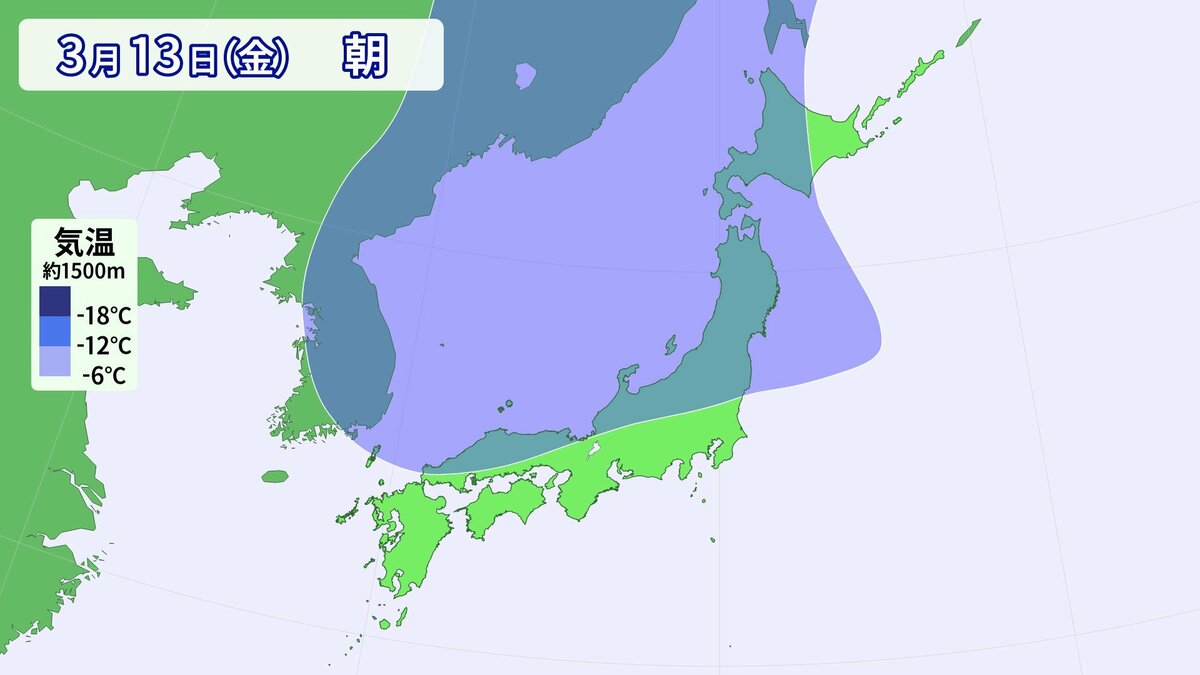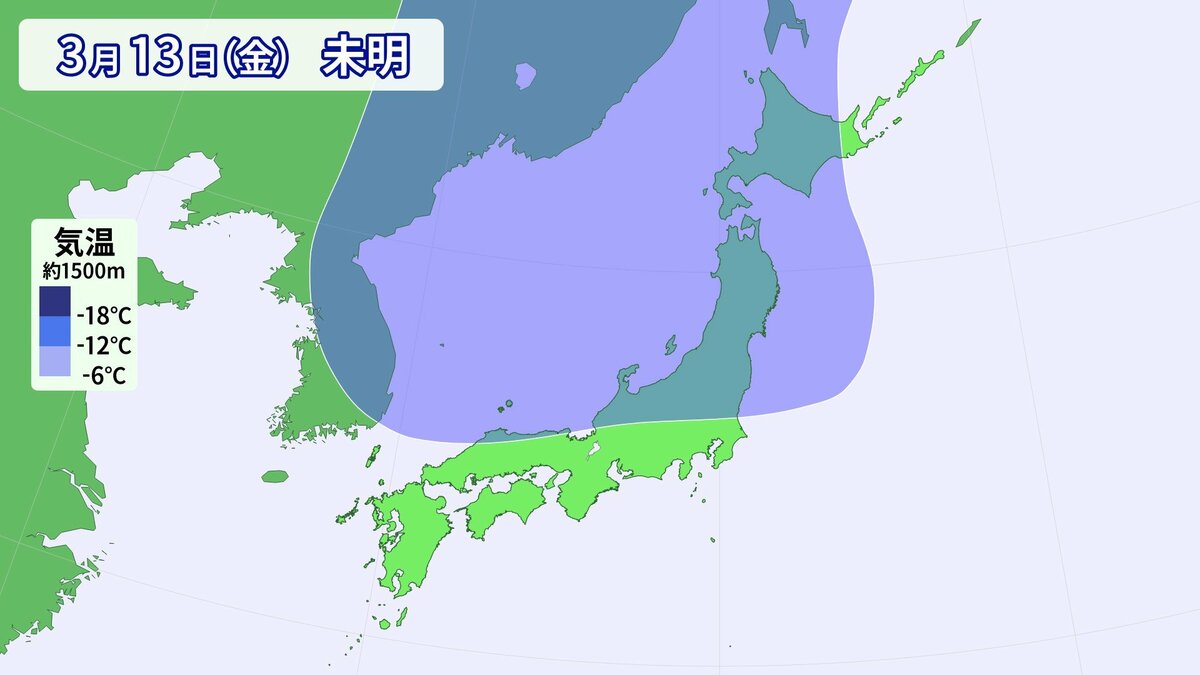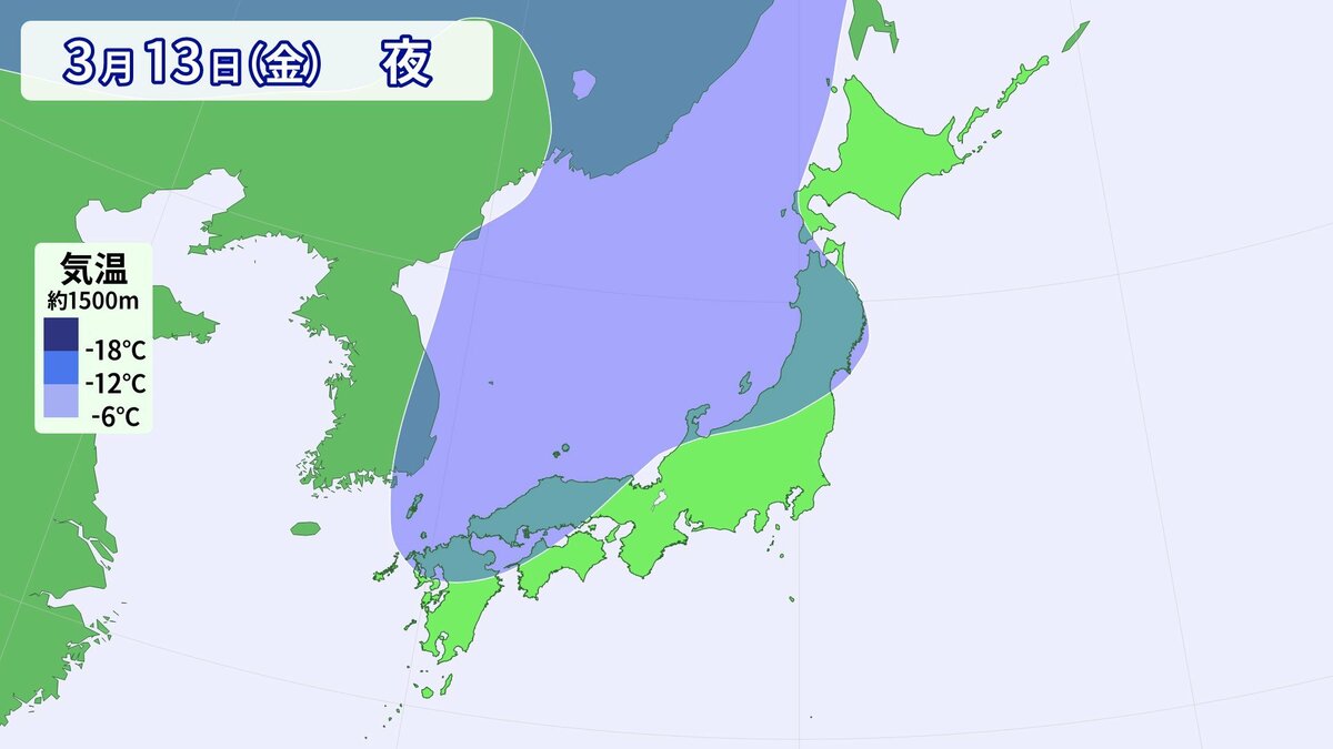 13日(金)夜は真冬の寒気が県内をすっぽり覆う