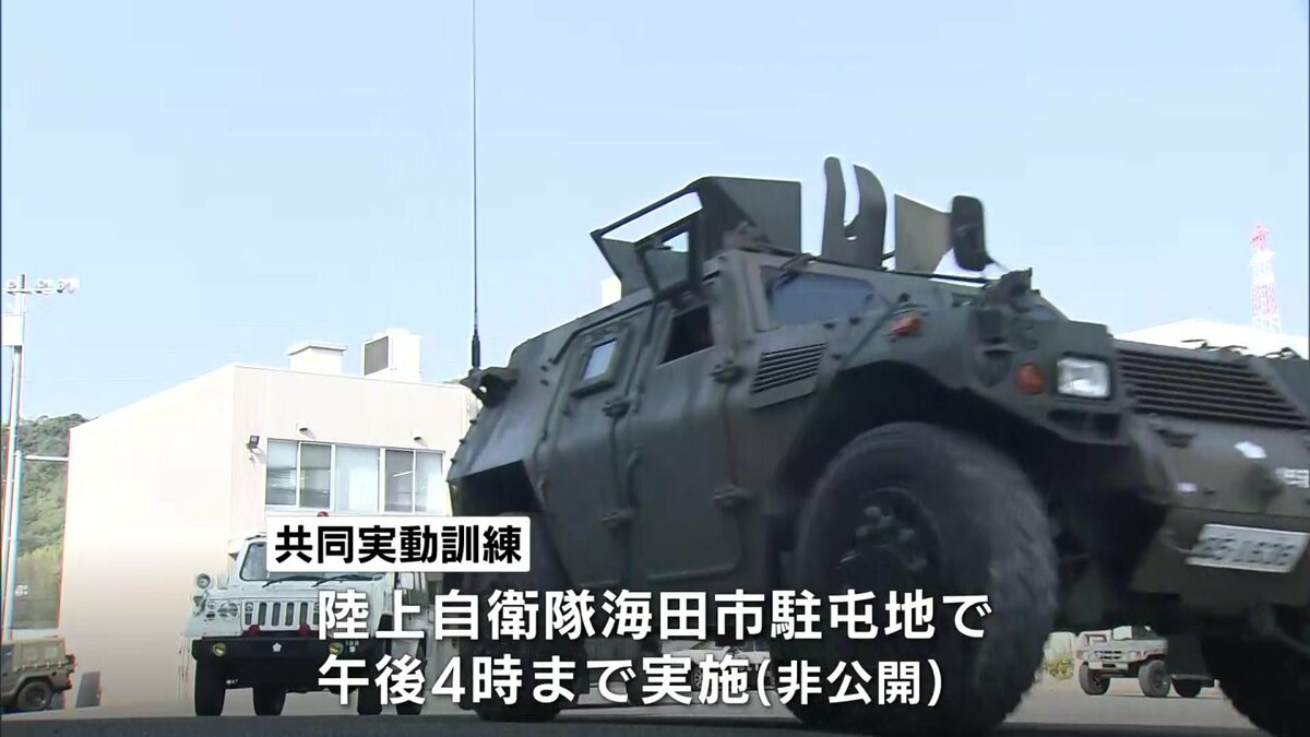 報道陣には、開始式からパトカーの先導による輸送訓練までが公開されました。訓練は陸上自衛隊海田市駐屯地で午後4時まで非公開で実施されます。