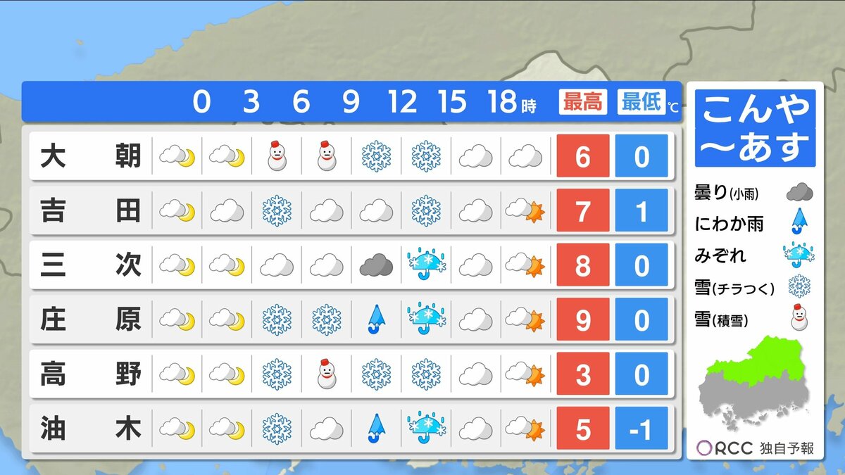 あすは高気圧の圏内で南部中心に晴れ間が広がりますが、上空には一時的に寒気が南下します。北部を中心に雪やみぞれが降り、山沿いでは積雪する見込みです。南部でもにわか雨の可能性があります。内陸部や標高高いところではみぞれや雪に変わるところもあるでしょう。