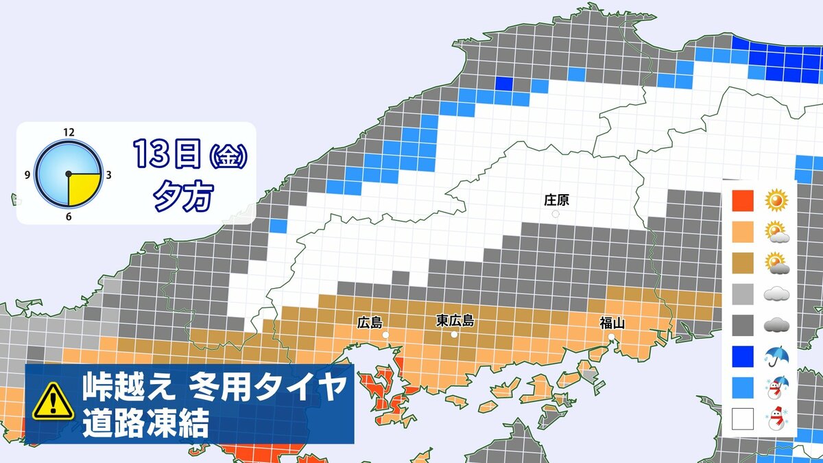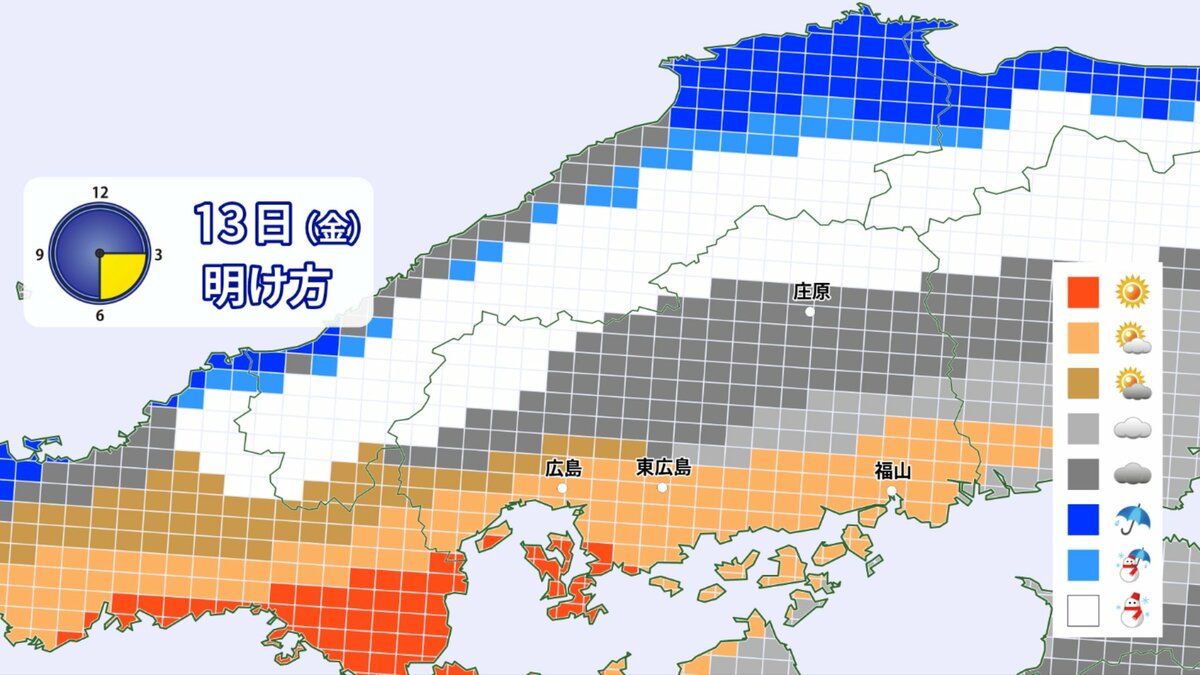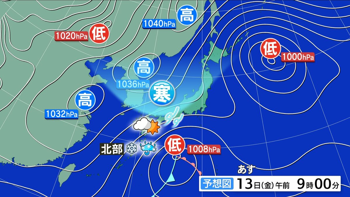 13日(金)不安定な空模様 北部中心に雪やみぞれ 南部晴れ間 北風冷たく冬の寒さ