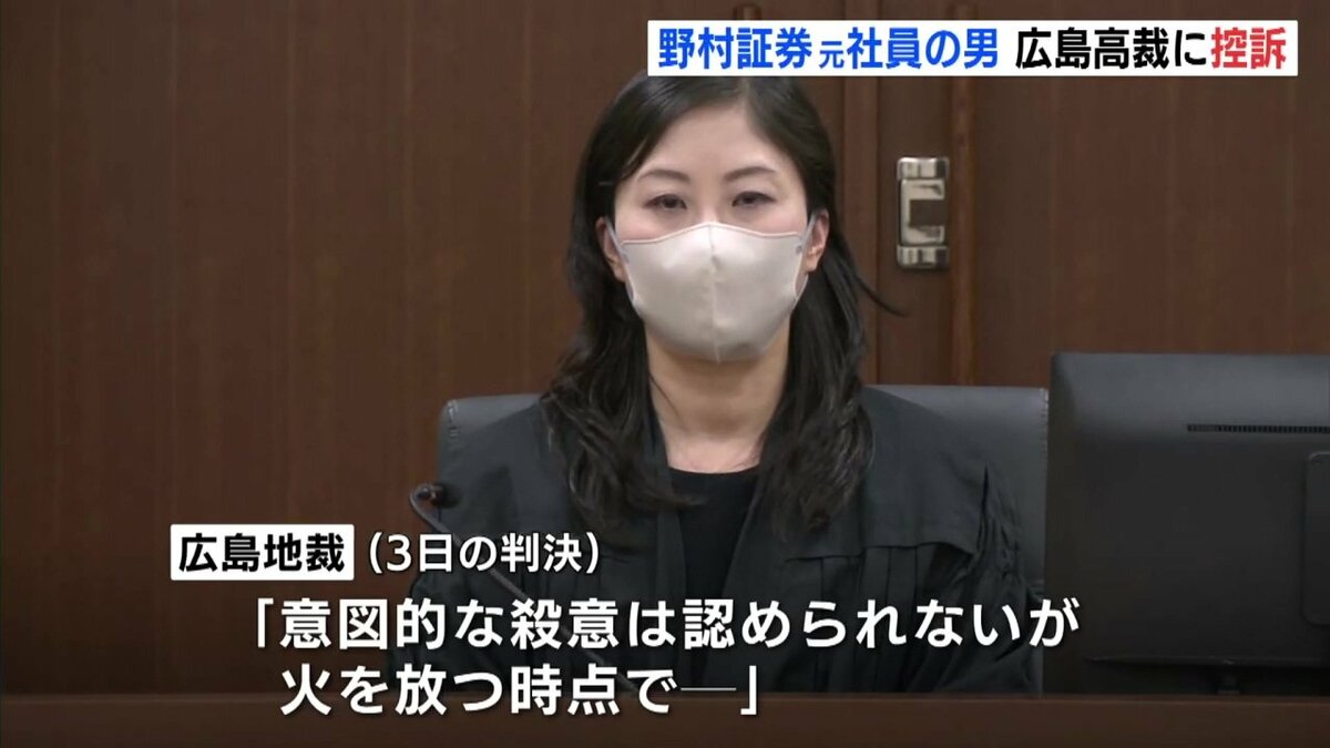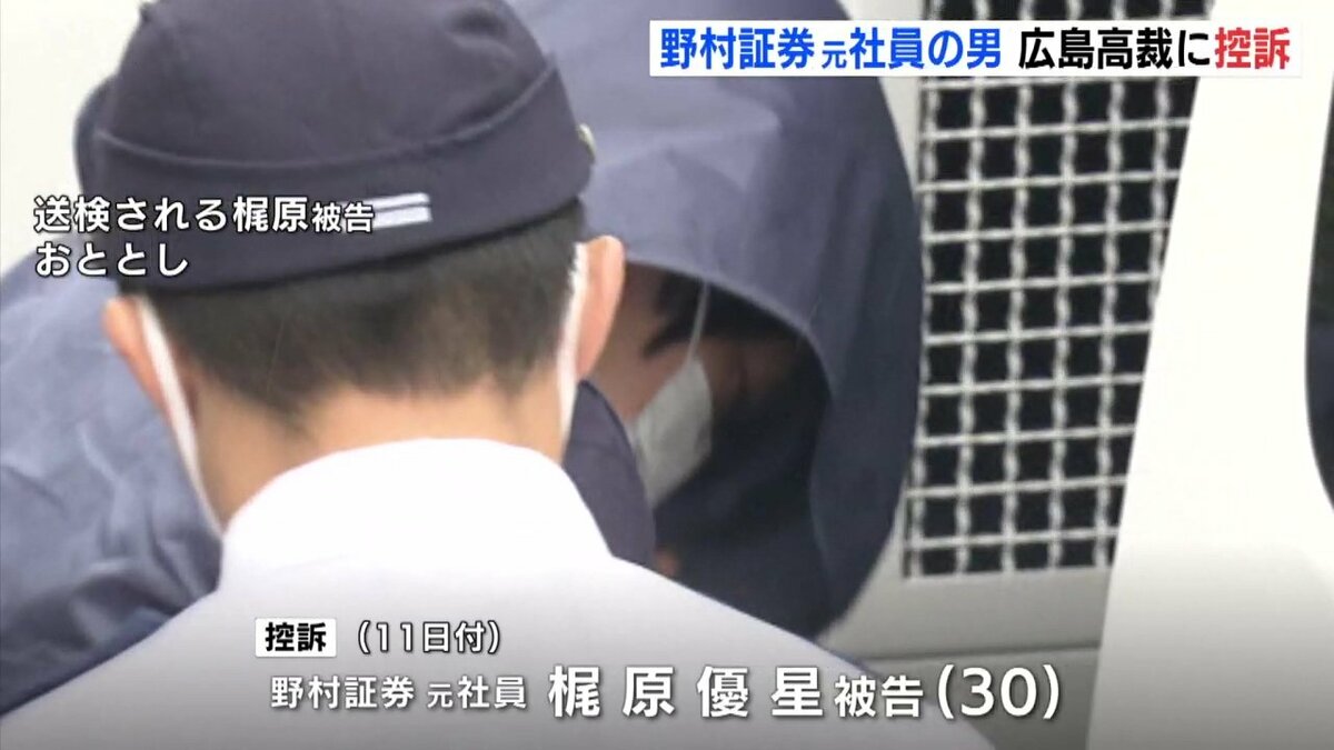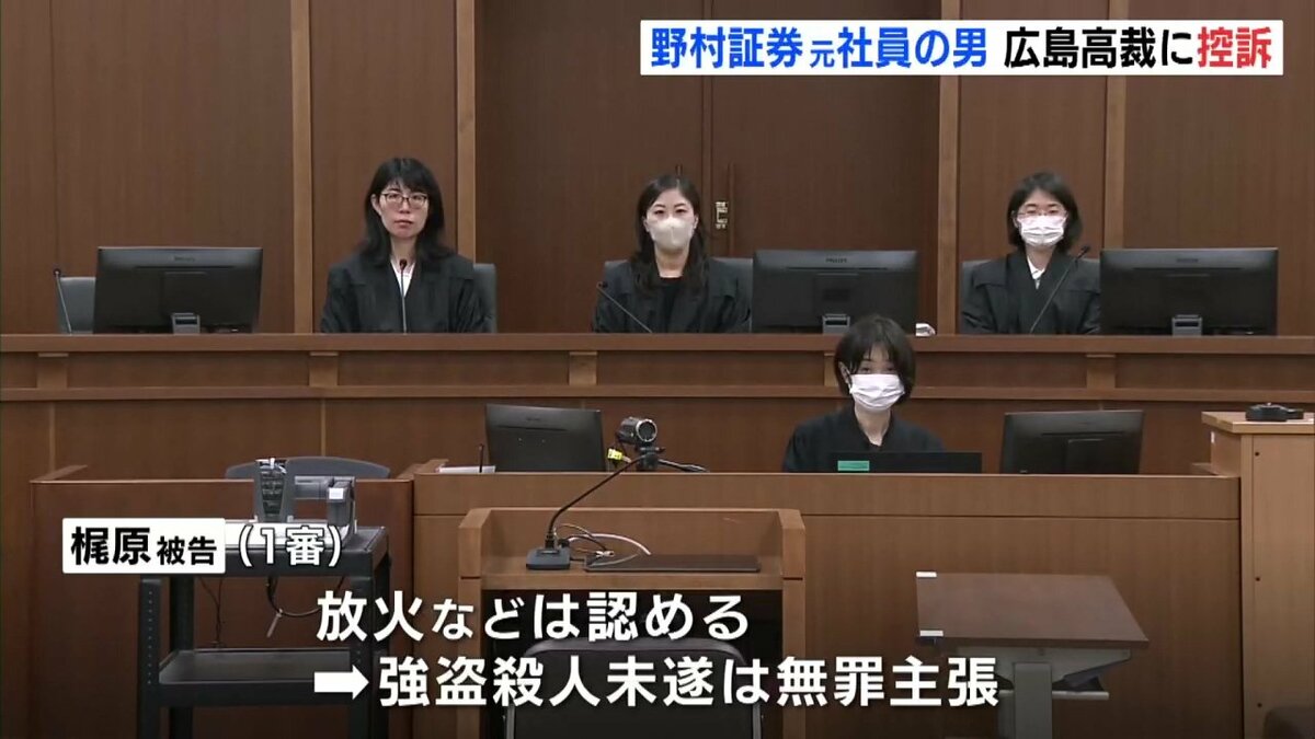 11日付で控訴したのは、野村証券の元社員・梶原優星被告です。梶原被告は、2024年、顧客の住宅で、80代の女性に睡眠薬を飲ませて現金およそ1800万円を奪い、証拠を隠滅するために火を放って殺害しようとした罪などに問われました。