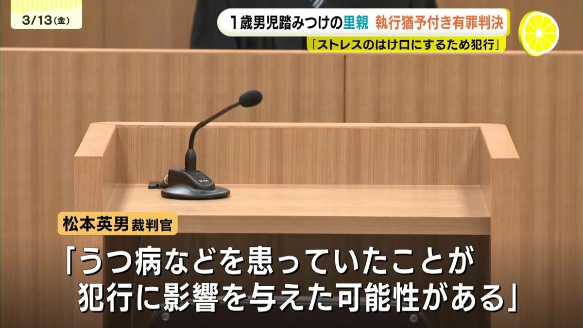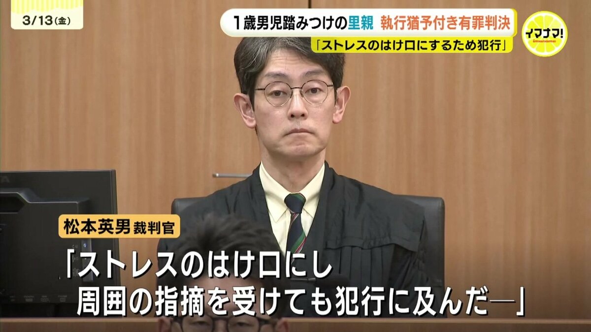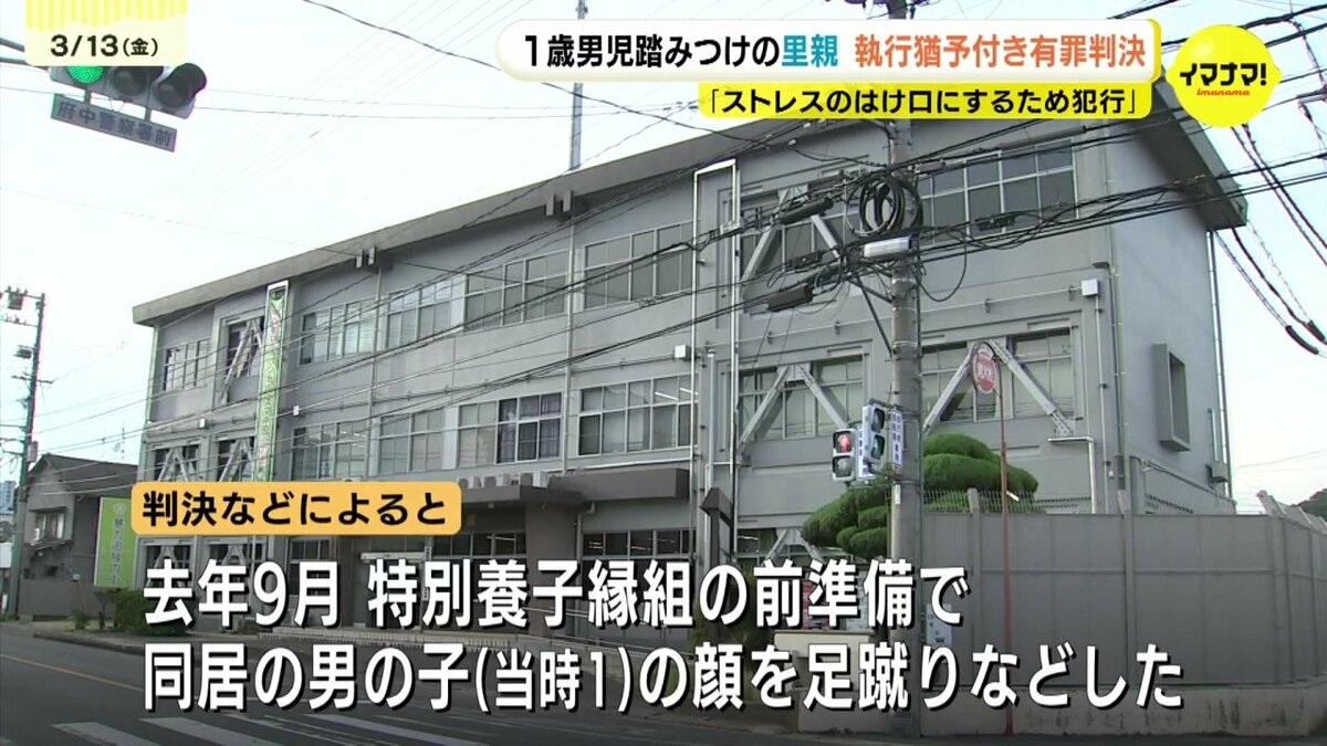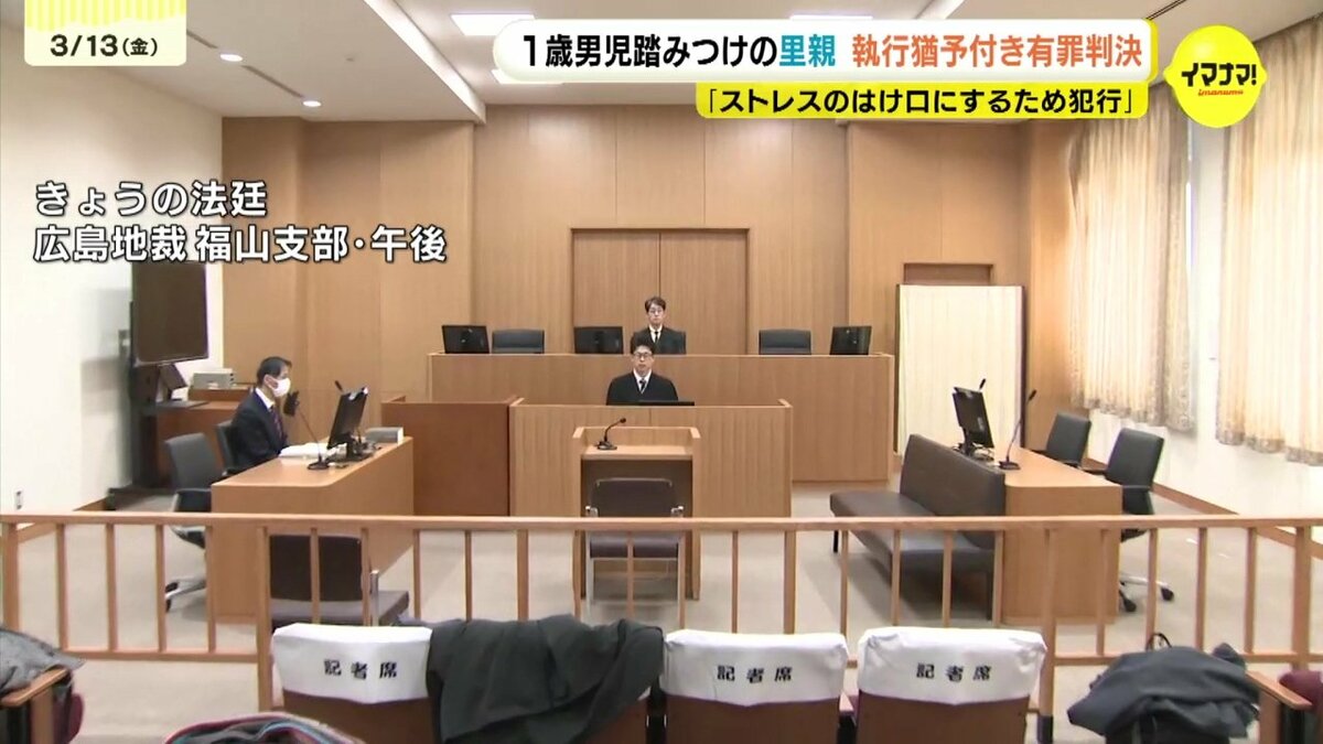 広島県府中市で、里親が当時1歳の男の子を踏みつけるなどして暴行の罪に問われた裁判で、広島地裁福山支部は13日、拘禁刑1年2か月、執行猶予4年の判決を言い渡しました。