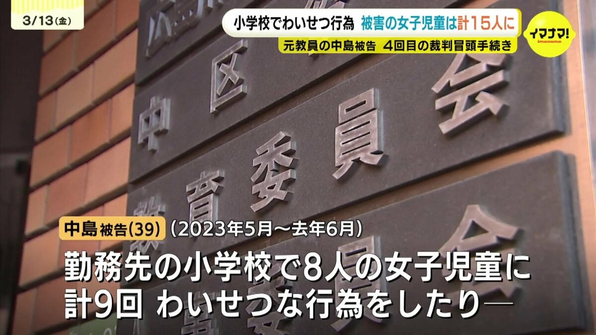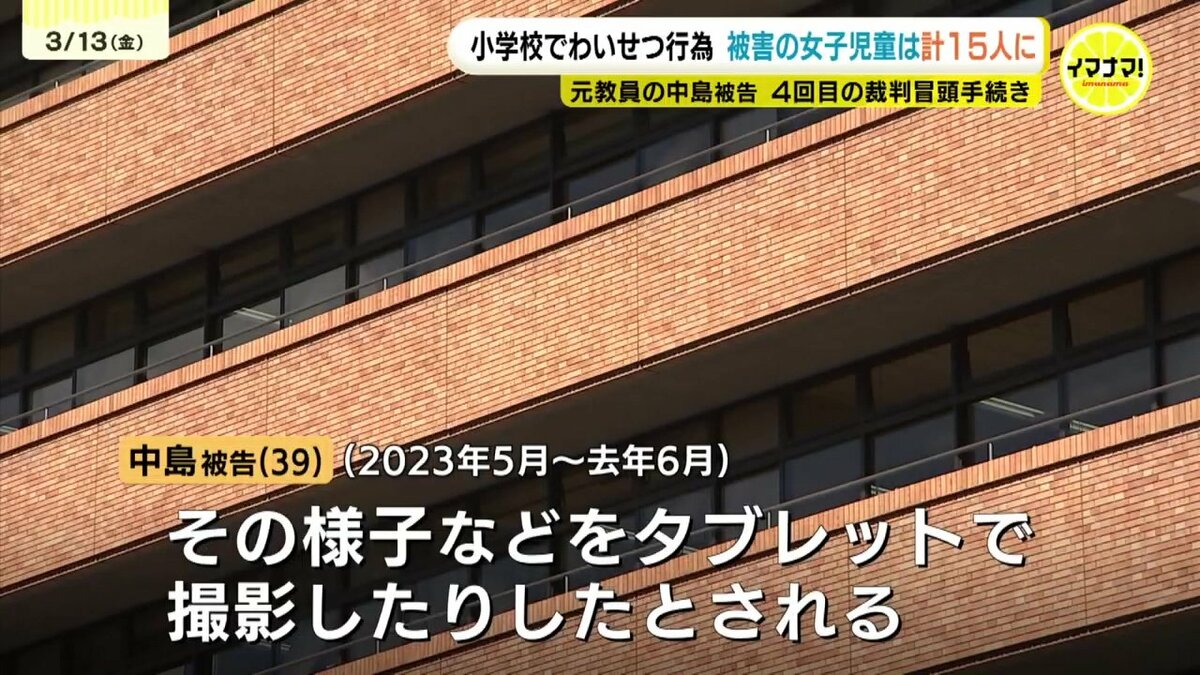 中島被告は別の7人の女子児童にも同様の行為をしたとして、これまでに10件の事件で起訴されていて、事件は合計19件、被害児童は15人にのぼっています。