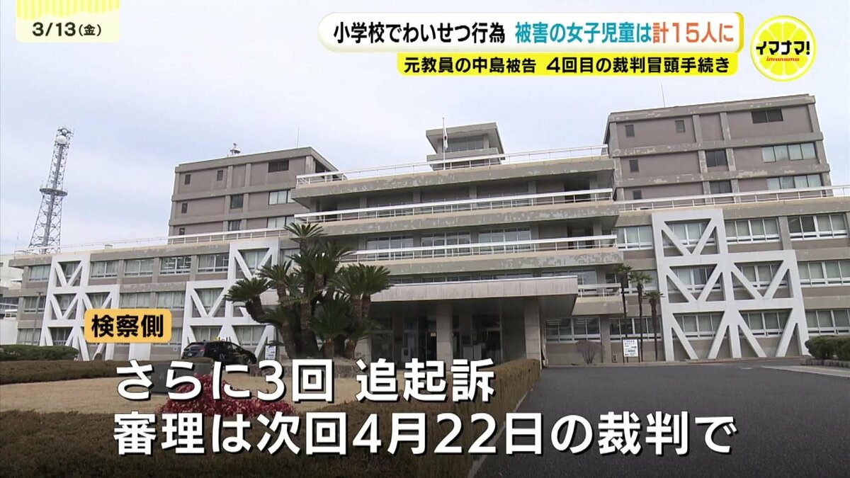 勤務先の小学校で女子児童にわいせつな行為をしたなどとして追起訴された元教員の男の裁判、4回目となる冒頭手続きが13日に広島地裁で行われ、新たに児童8人の被害が明らかになりました。