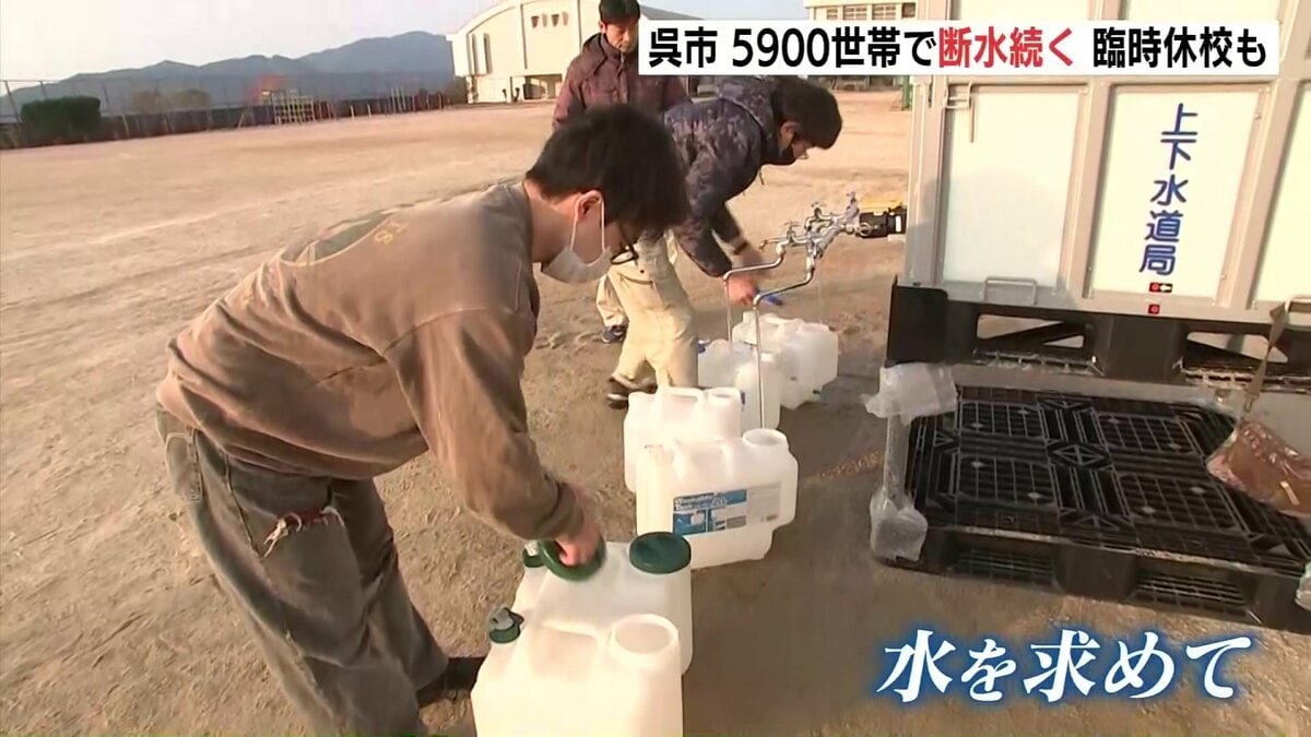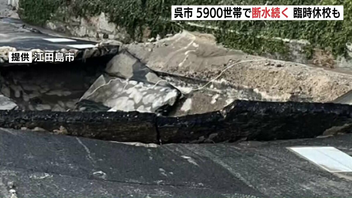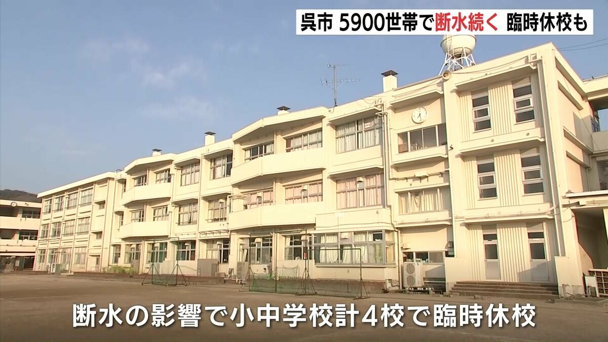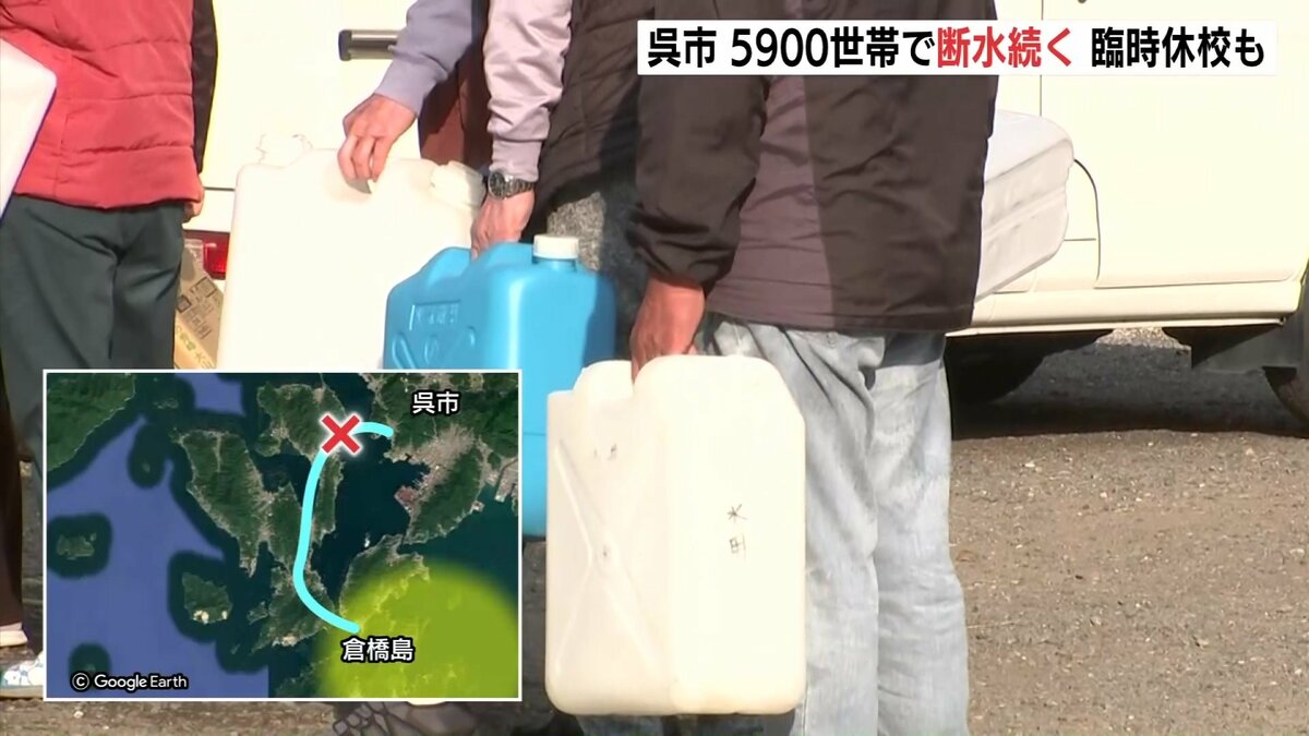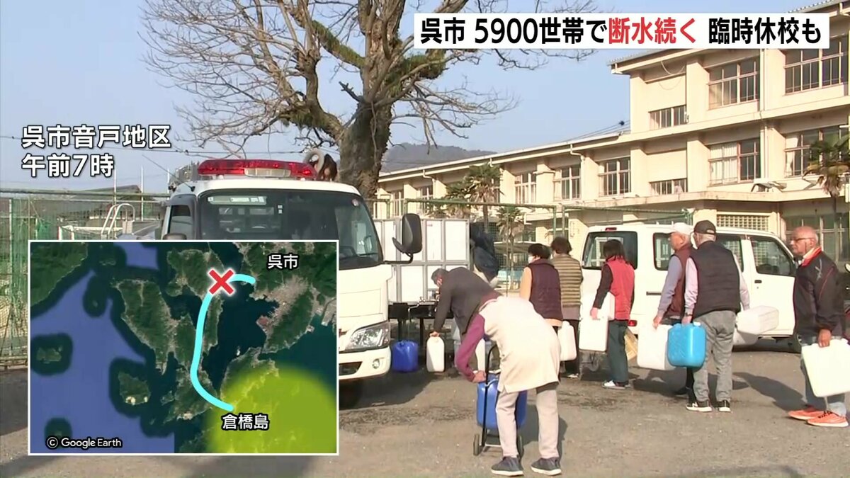 広島県江田島市で水道管が破損した影響で、隣の呉市では16日も約5900世帯で断水が続いています。また、付近の小中学校計4校が臨時休校となりました。