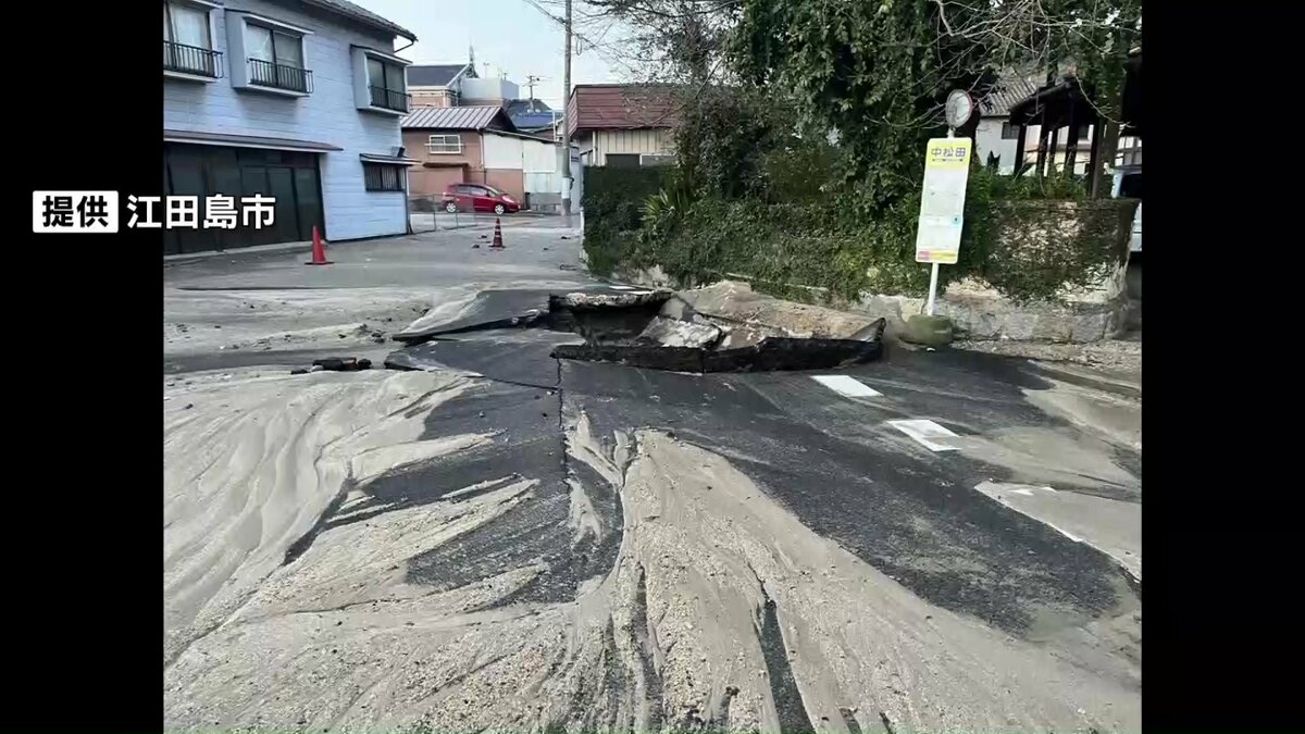 県水道広域連合企業団によりますと14日朝、江田島市で道路が陥没しているのが見つかりました。原因は、隣の呉市へ水を送る送水管からの漏水でした。