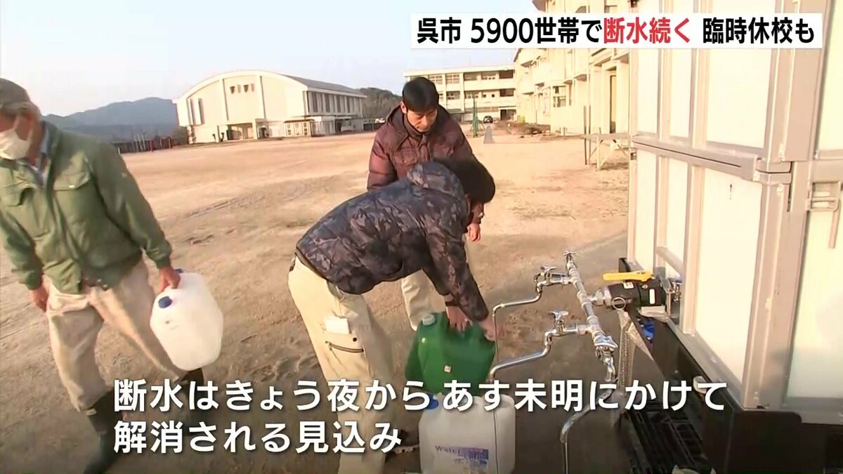 現場の復旧作業が午前中に終了したことを受け、呉市は、16日夜から17日未明にかけて、断水は解消される見込み、としています。