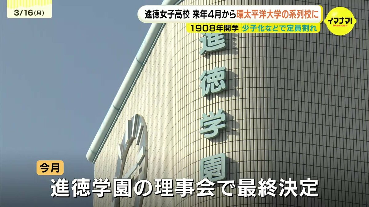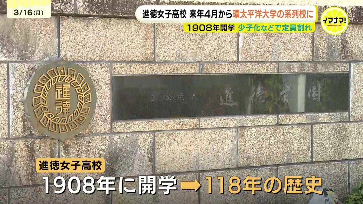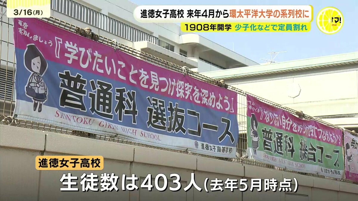 進徳女子高校は1908年に開学し、118年の歴史があります。去年5月時点の生徒数は、403人。18年連続で定員割れが続いていたということです。