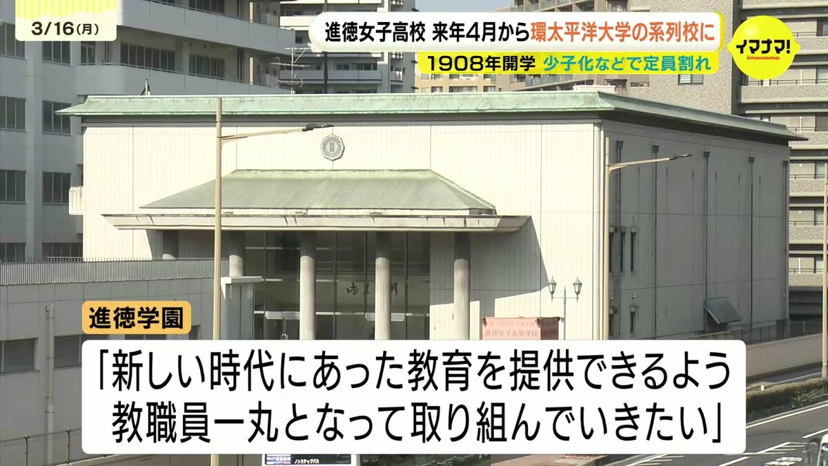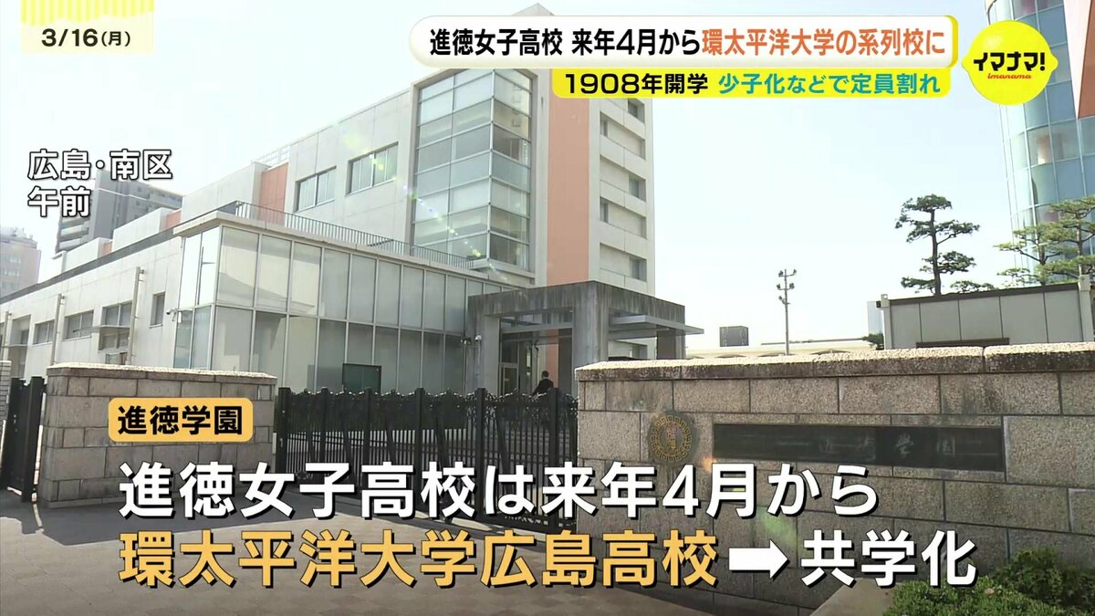 学校法人進徳学園によりますと、進徳女子高校は来年4月から環太平洋大学広島高校となり、共学化するということです。