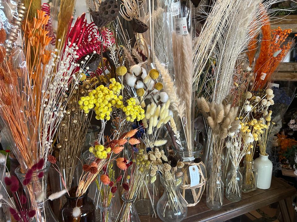 店内には、さまざまなドライフラワーが並んでいます。