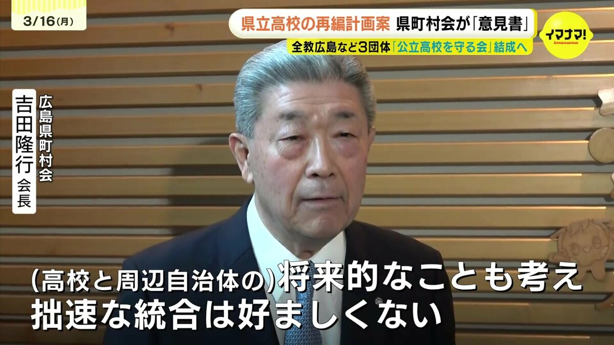 一方、県内の小・中学校の教職員でつくる全教広島など3つの団体は、県立高校の再編計画に反対する「広島の公立高校を守る会」の結成を発表しました。