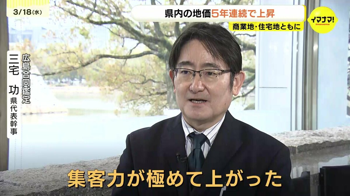 「再開発とインバウンドによって中心部が栄えて、若い人がどんどん広島に流れてくるようになれば、近郊の住宅地はまた地価水準も上昇して良い循環が生まれてくるのでは。広島は集客というものに対するファクターは揃ってきている。ポテンシャルは私はあると思っています」