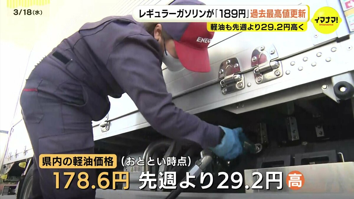 不安定な国際情勢が続くなか、史上最高値を更新です。広島県内のレギュラーガソリン価格が、189円に達しました。前の週より29円高くなっています。