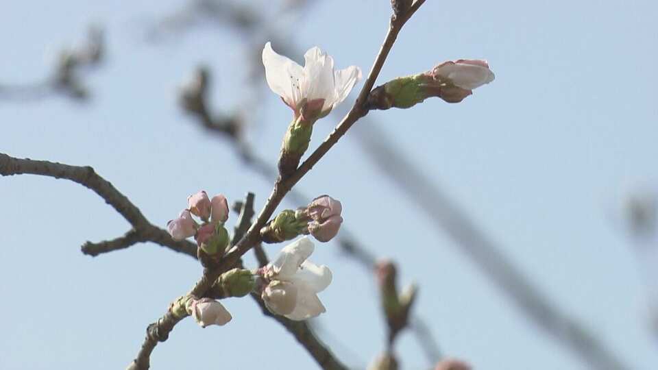 平年より6日早く、去年より7日早い開花発表で、2021年に次いで、過去2番目に早い観測となりました。