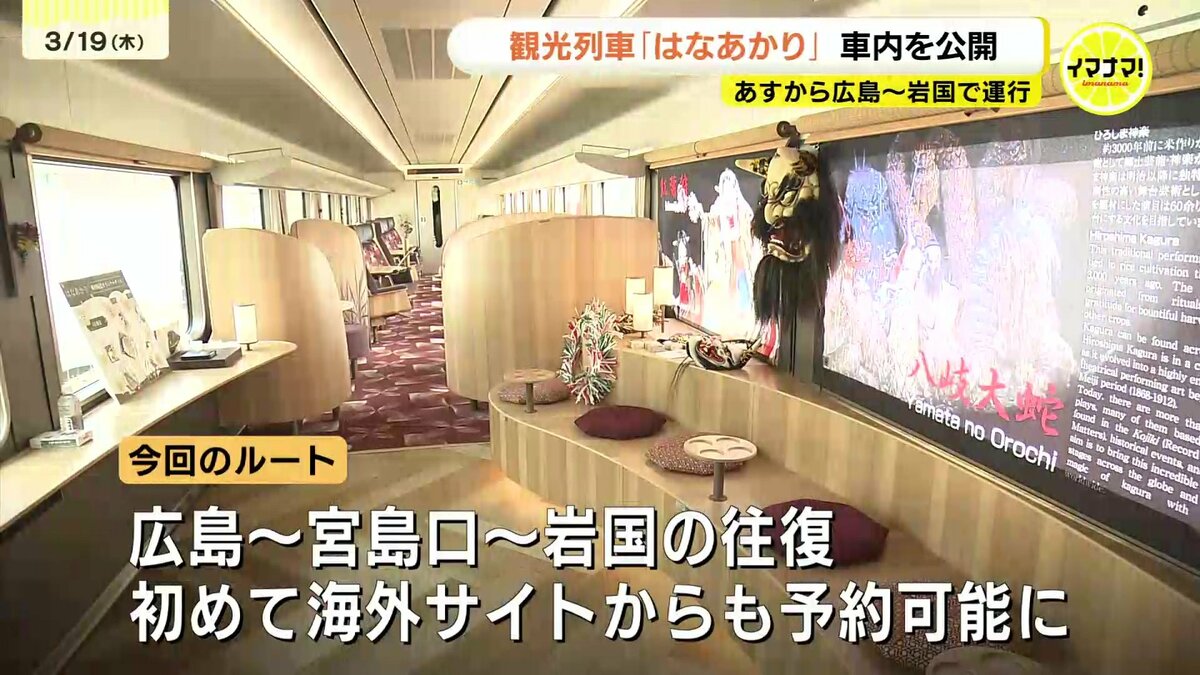 今回のルートは広島・岩国間を往復し、宮島口にも一時停車。初めて海外サイトからの予約も可能にし、インバウンド客の取り込みも狙います。