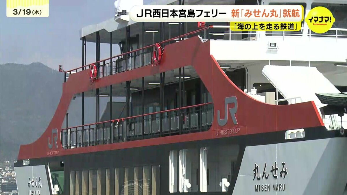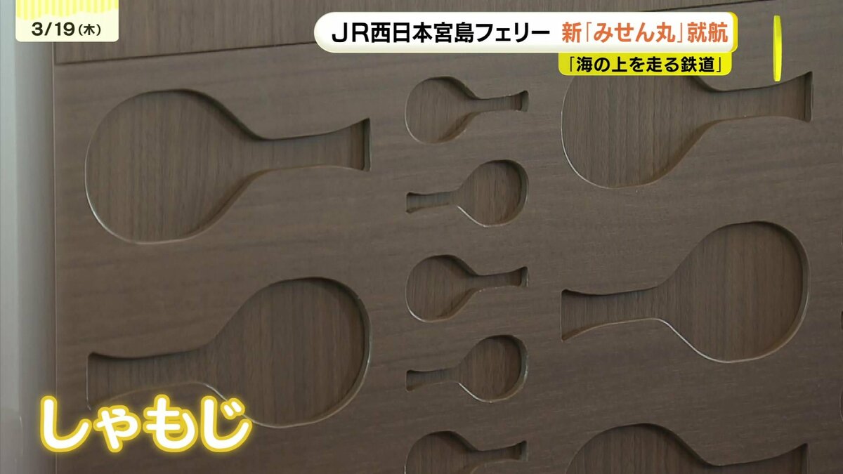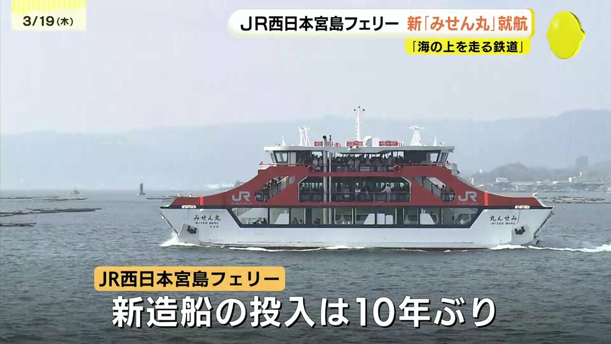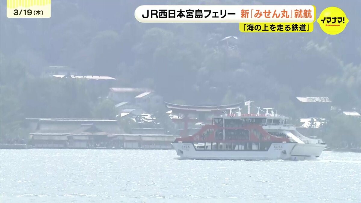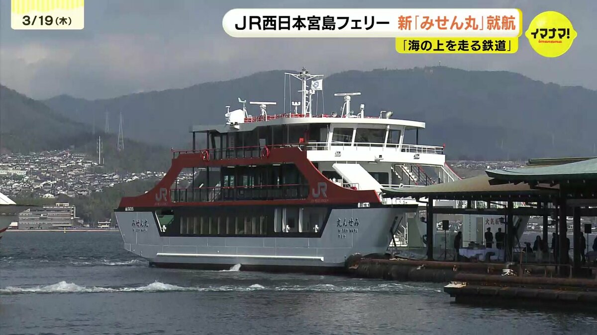 宮島と宮島口を結ぶJR西日本宮島フェリーの新型船「みせん丸」が、19日、就航の日を迎え、ユニークな姿がお披露目されました。