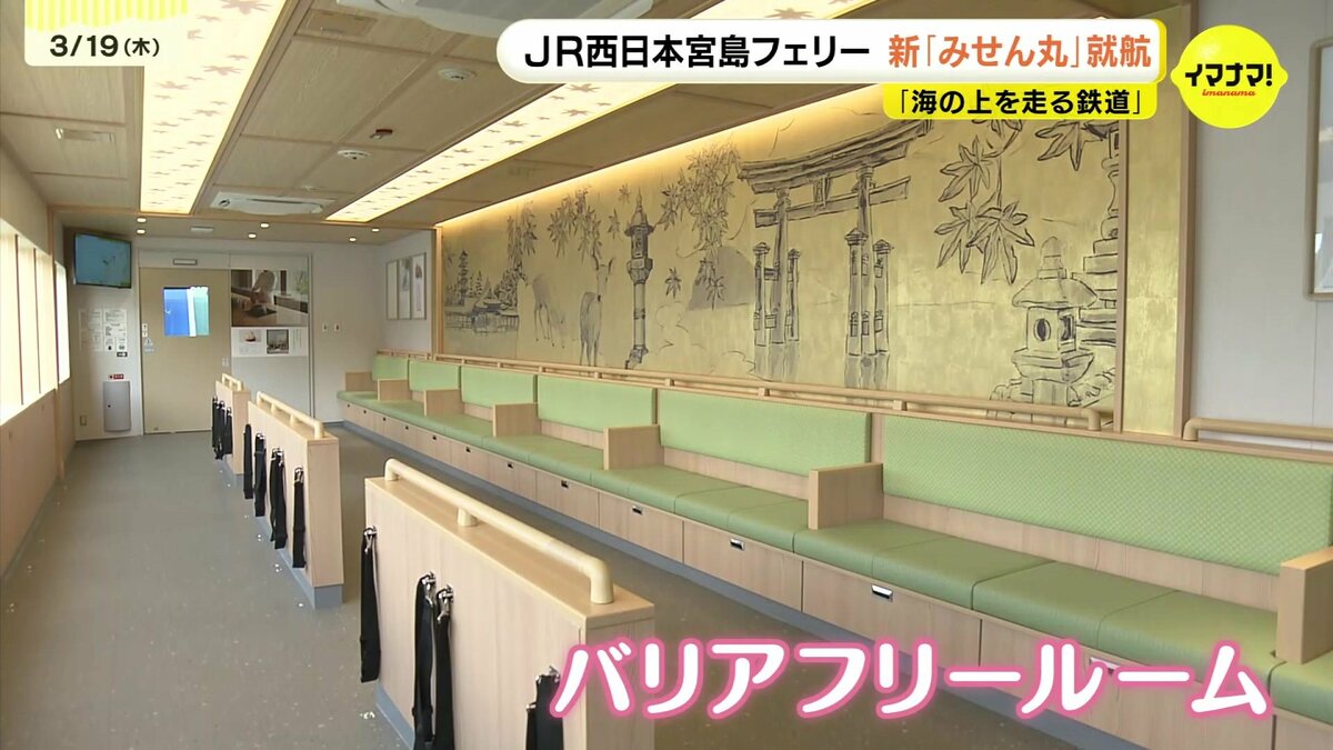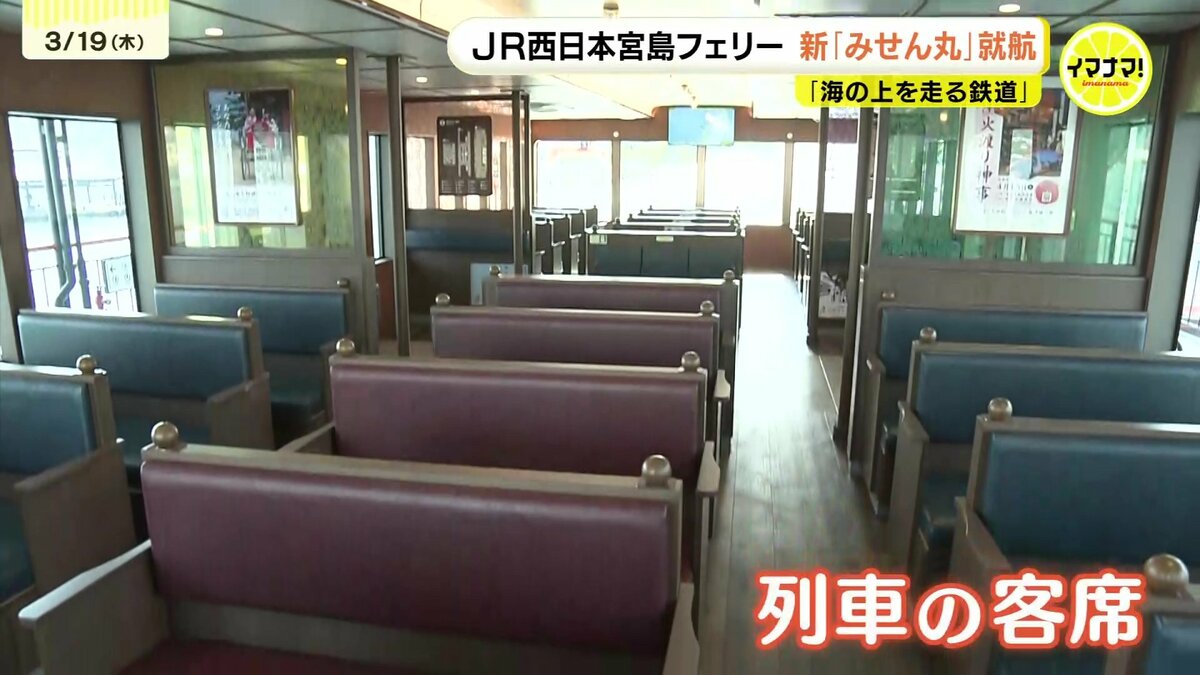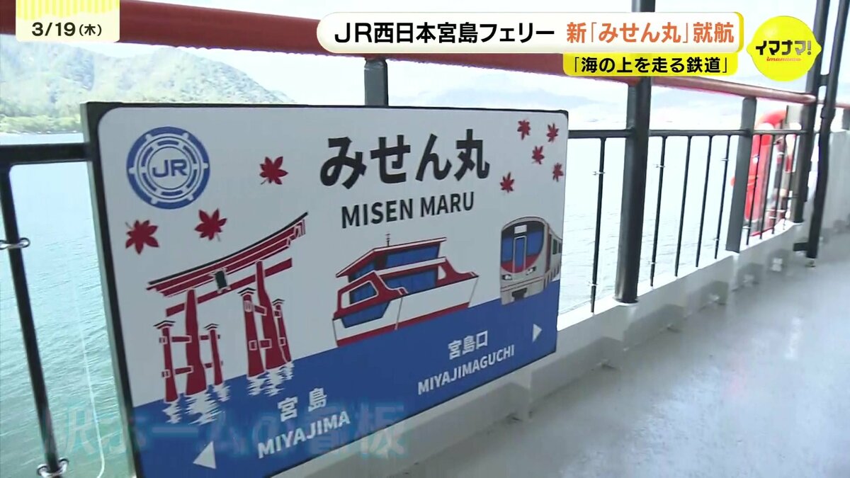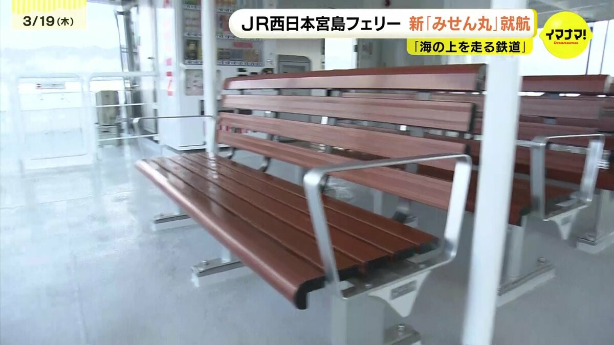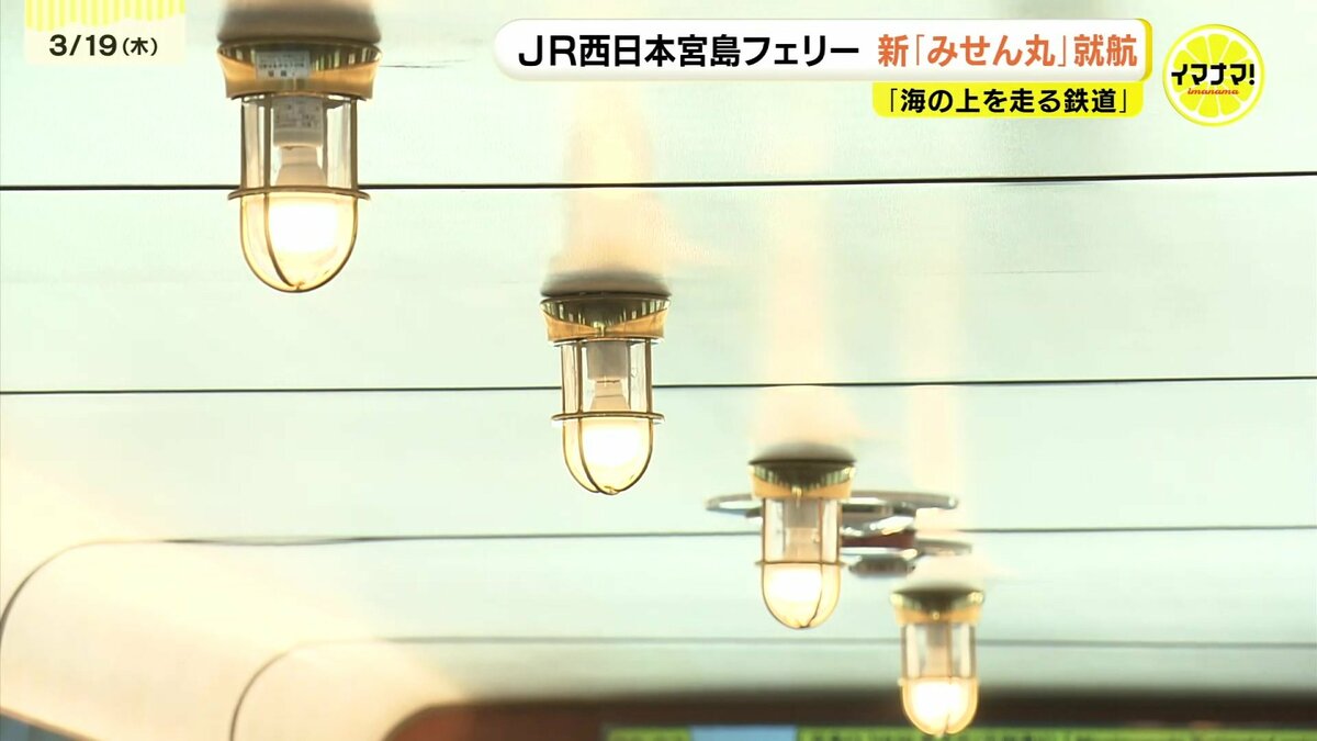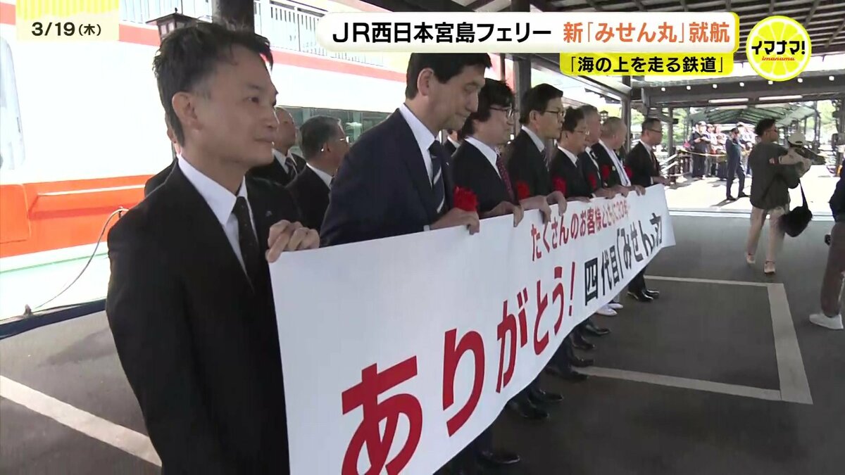 宮島と宮島口を結ぶJR西日本宮島フェリーの新型船「みせん丸」が、19日、就航の日を迎え、ユニークな姿がお披露目されました。