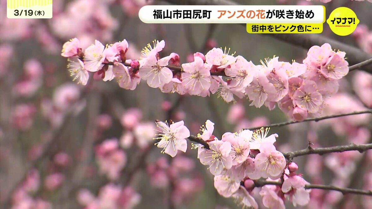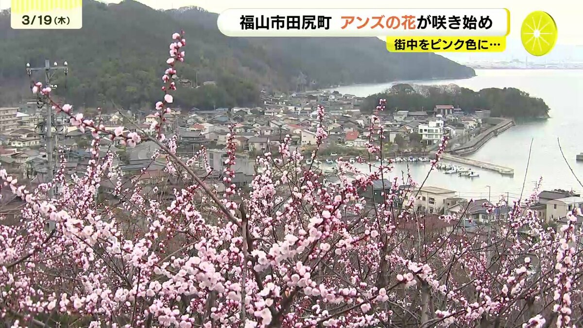 広島県福山市で19日、アンズの花が咲き始め、街中をピンク色に染めています。